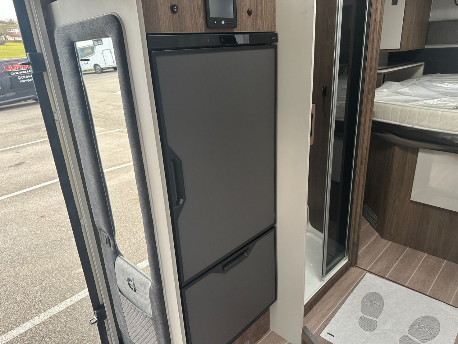 Le camping-car parfait pour ceux qui veulent profiter d’un espace généreux, bien organisé avec des zones distinctes et beaucoup de rangements. Il dispose d’un coin repas face à face, avec une table rabattable pour optimiser l’espace, ainsi que de toilettes et d’une douche séparées pour un confort optimal. Au centre, on trouve un lit double, offrant un coin nuit pratique et confortable, idéal pour des séjours en toute simplicité.