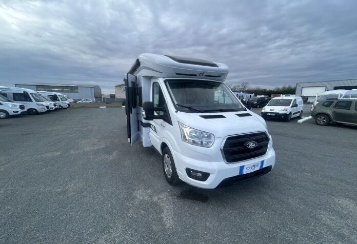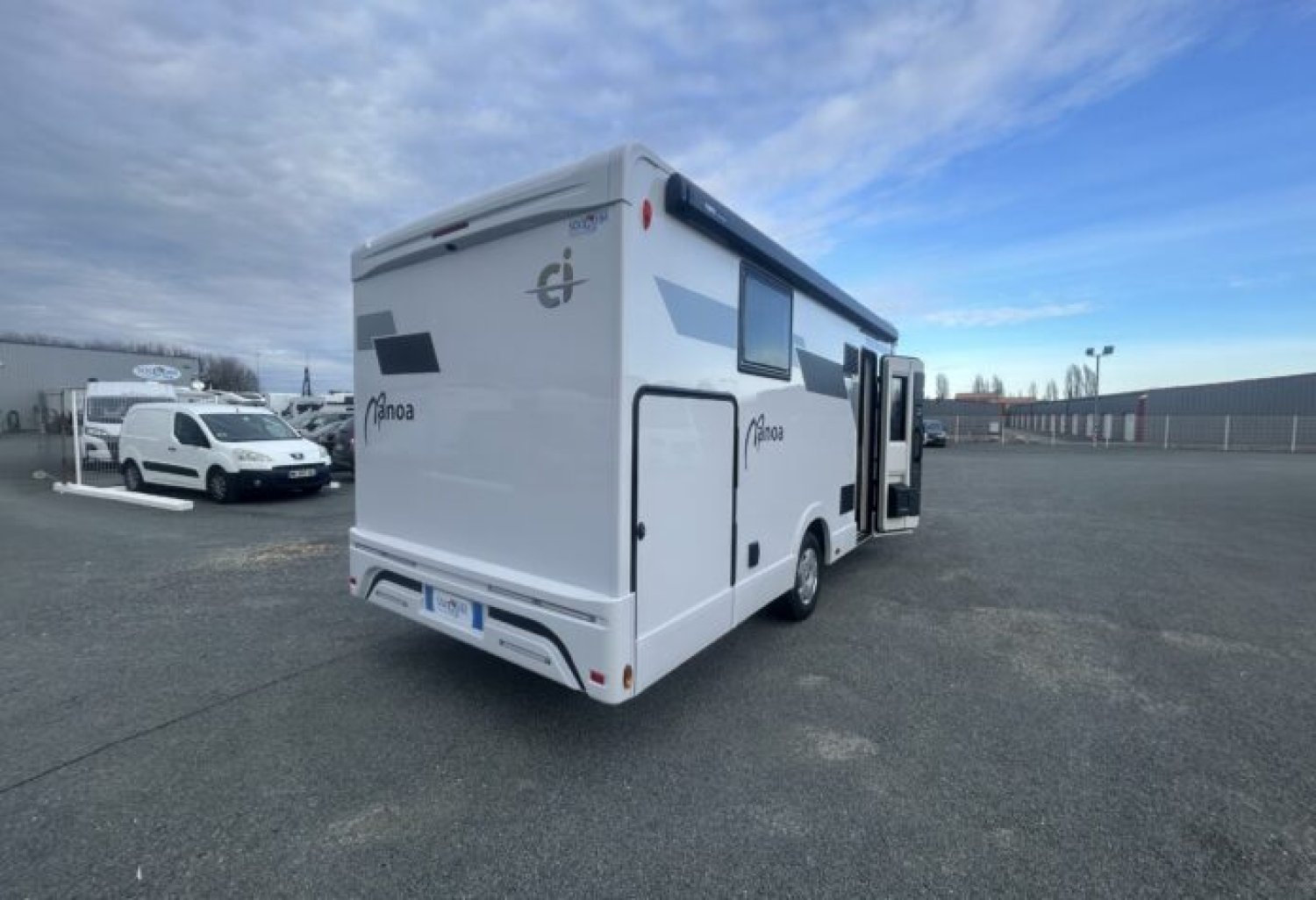 Le CI MANOA 66L XT 2026 est un camping-car profilé neuf de 7,45 m sur porteur Ford Transit 165 ch, offrant 5 places carte grise et 5 couchages avec lit central et lit de pavillon, parfait pour les voyages en famille. Il est équipé de série d’une caméra de recul, climatisation, écran tactile 12″, régulateur de vitesse et chauffage Truma, alliant confort et modularité pour toutes vos aventures.