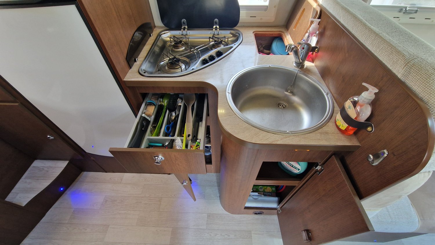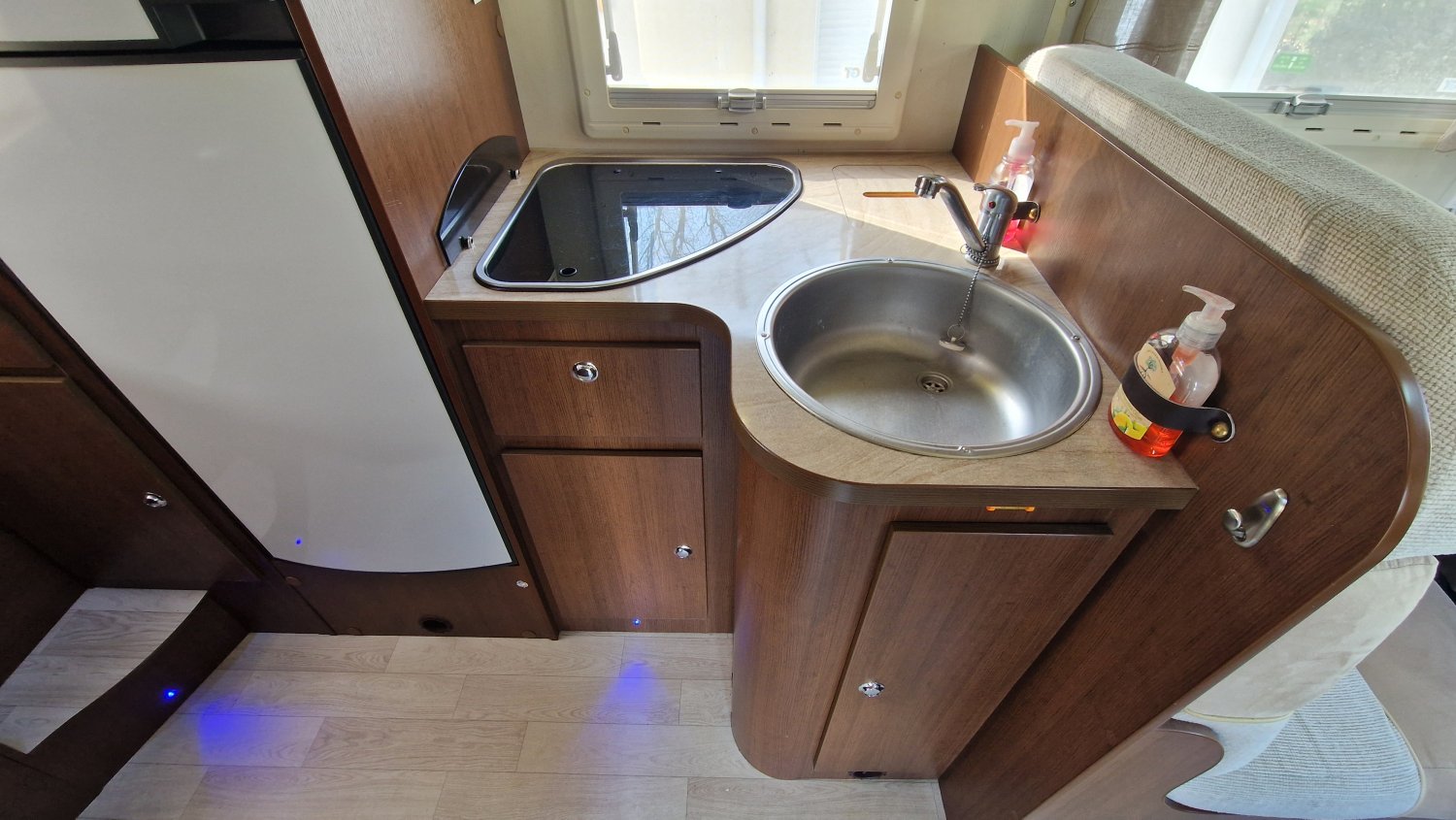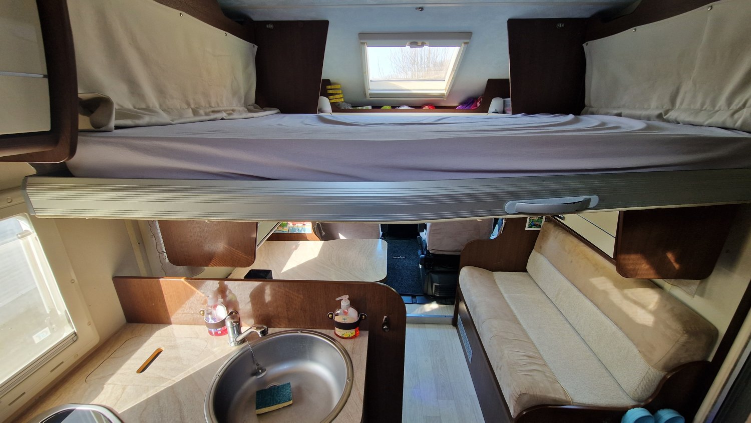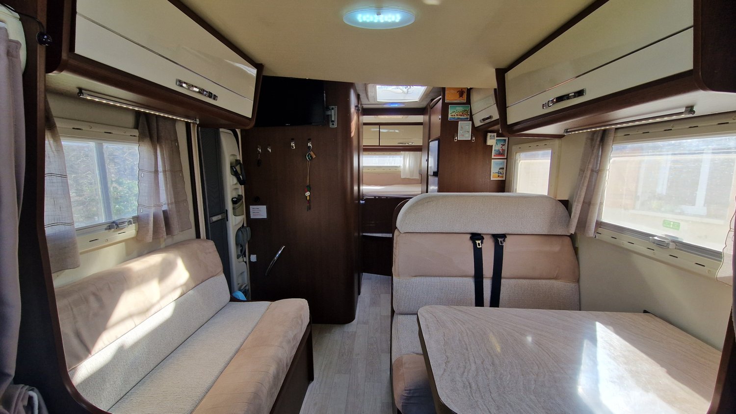 Une implantation idéale pour 4 personnes qui bénéficie de tous les équipements pour voyager sereinement toute l'année : couchages confortables avec lit transversal AR + lit de pavillon et lit dinette d’appoint, grand salon lumineux et convivial, cuisine ergonomique en L équipée d'un grand réfrigérateur, salle d'eau avec cabine de douche et cabinet de toilette séparés.