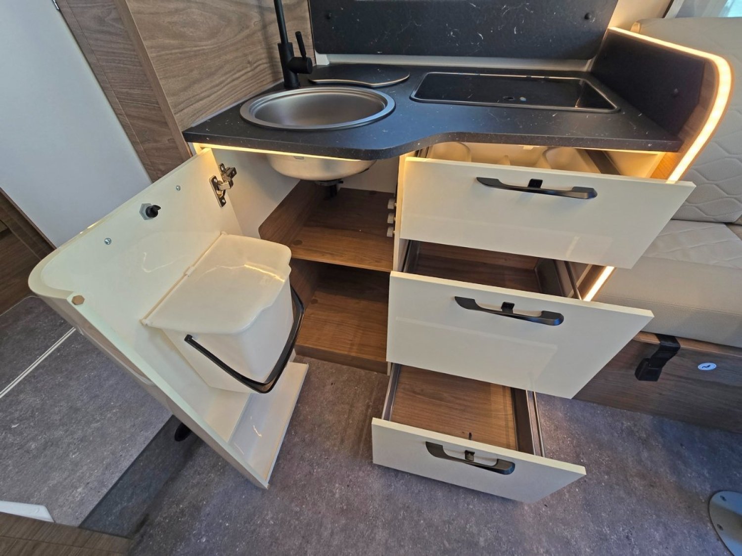 Antibrouillard / Climatisation porteur / port usb cabine / Pneus 4 saisons / Boite automatique 140ch / baies à cadre / lanterneau panoramique de cabine / lit de pavillon electrique / batterie lithium 104 Ah / panneau solaire 120w / Stores occultant intérieur / Stores plissés cabine / chauffage air pulsé Combi 6 gaz et électricité / pré équipement TV / Pré équipement caméra / ambiance intérieure Tropéa / régulateur de vitesse / jantes alu 16 / pare choc avant peint / volant et levier vitesse cuir / parois latérales en aluminium / moustiquaire de porte cellule / 2eme porte de soute / éclairage LED indirect / miroir et porte manteaux / prise de courant dans cuisine et soute / longueur 7,40m / largeur 2,32m / hauteur 2,95m / 4 places / 4 couchages / Réfrigérateur gaz et électricité 137 l avec compartiment freezer de 15 l / dimension porte de soute 95 x 110 et 75 x 80 / Porteur Fiat Ducato