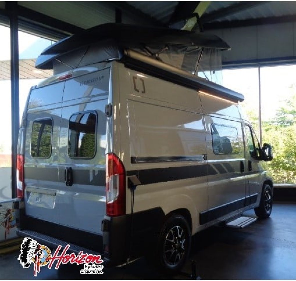 TOIT RELEVABLE, PEINTURE GRIS EXPEDITION, CAPTEUR PRESSIONDES PNEUS, PACK SECURITE, FEU ANTIBROUILLARD, CLIMATISATION CABINE AUTO, ATTELAGE AMOVIBLE, COMMANDE RADIO AU VOLANT, AVERTISSEUR D’ANGLE MORT ESP / TRACTION, 2EME BATTERIE CELLULE