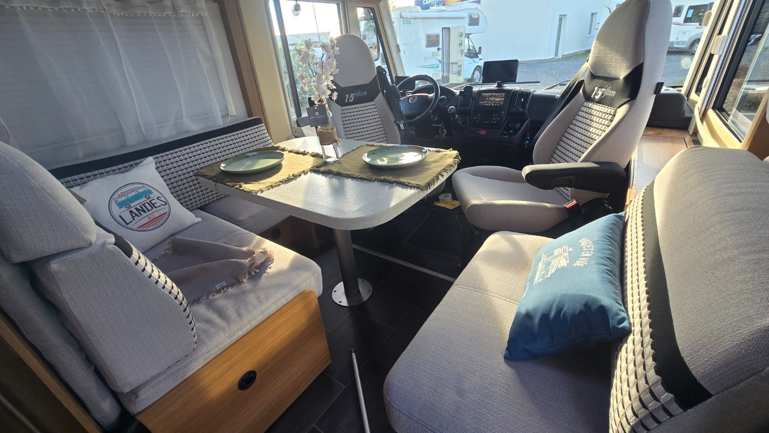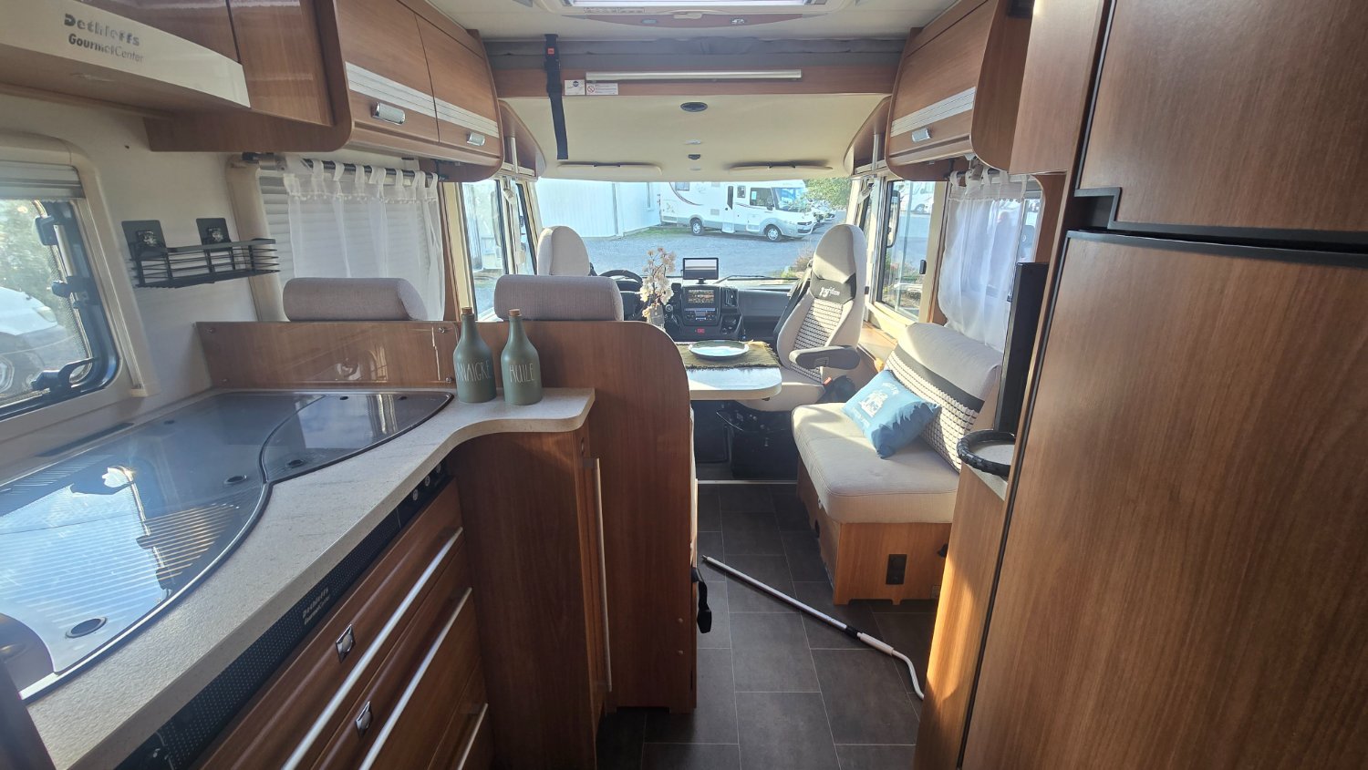 Découvrez cet intégral DETHLEFFS en lit central et lit pavillon, douche et wc séparés, un jolie salon sur un châssis fiat 150 ch.