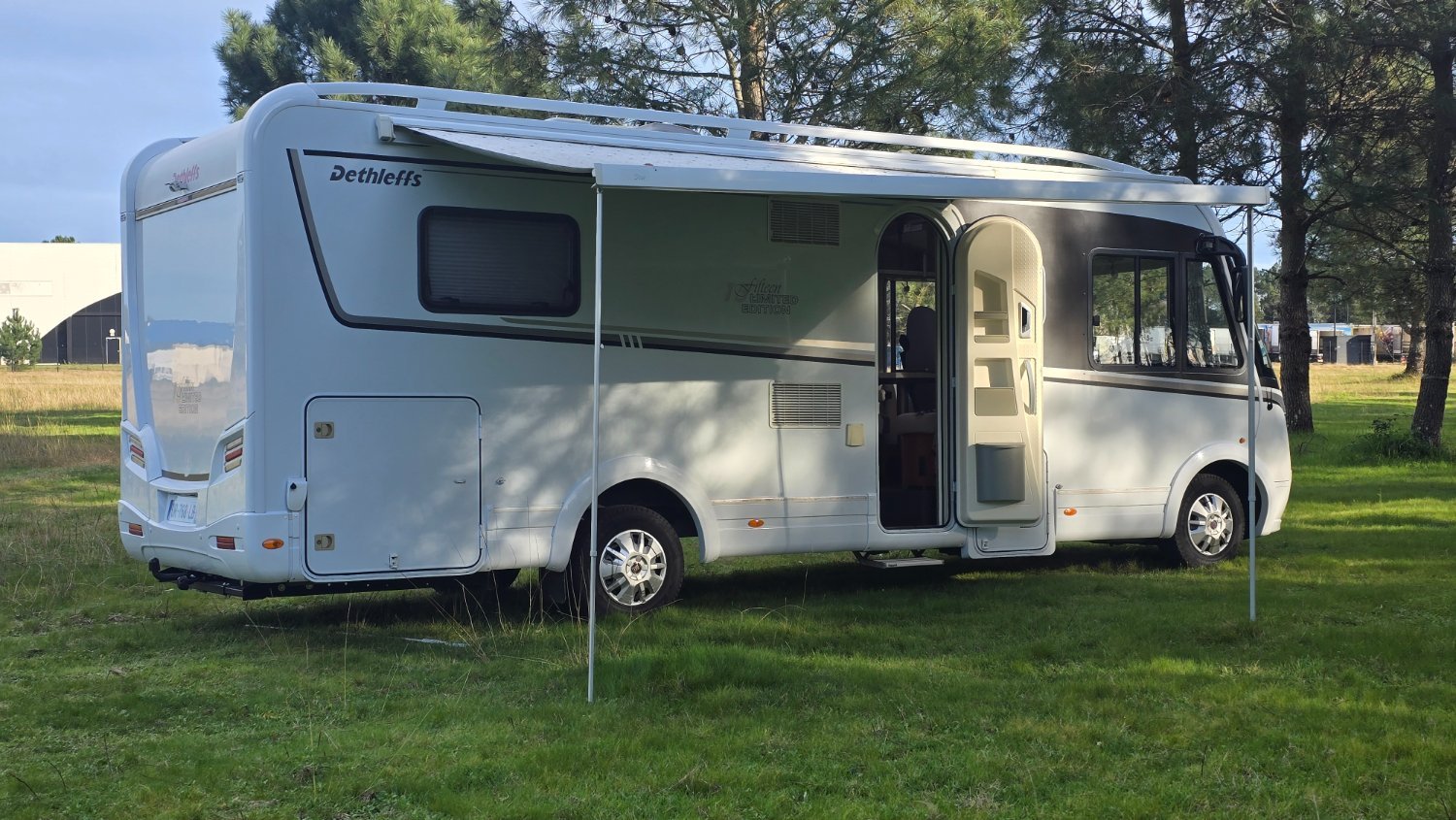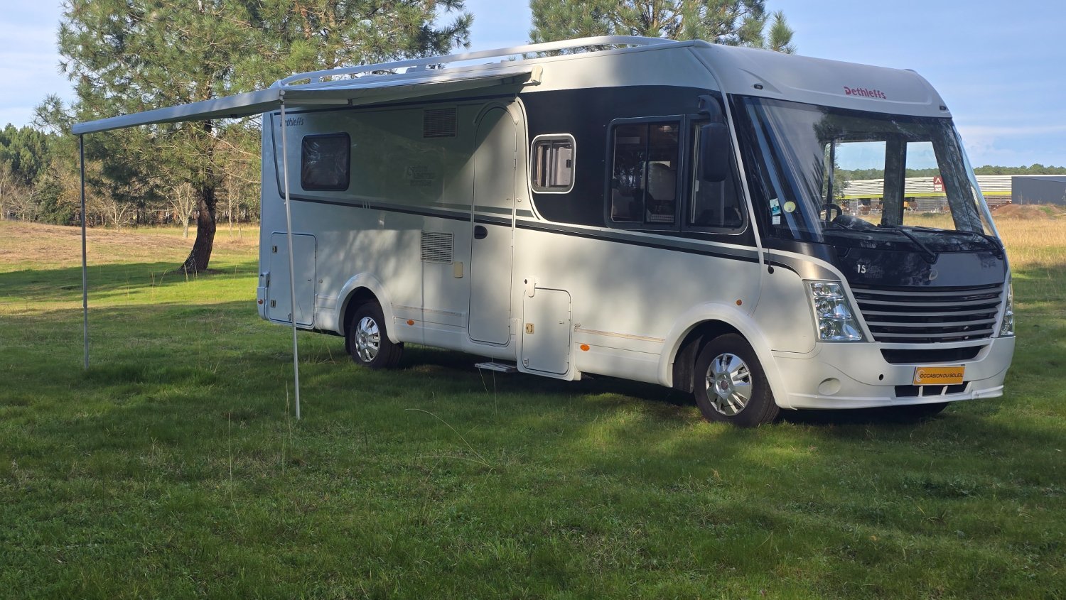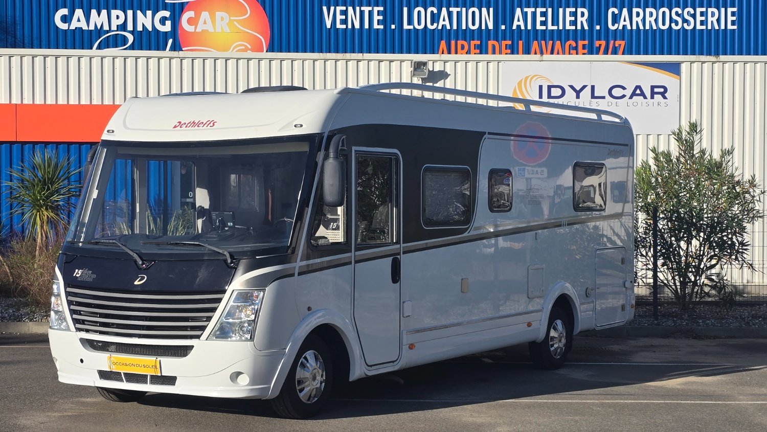 Découvrez cet intégral DETHLEFFS en lit central et lit pavillon, douche et wc séparés, un jolie salon sur un châssis fiat 150 ch.