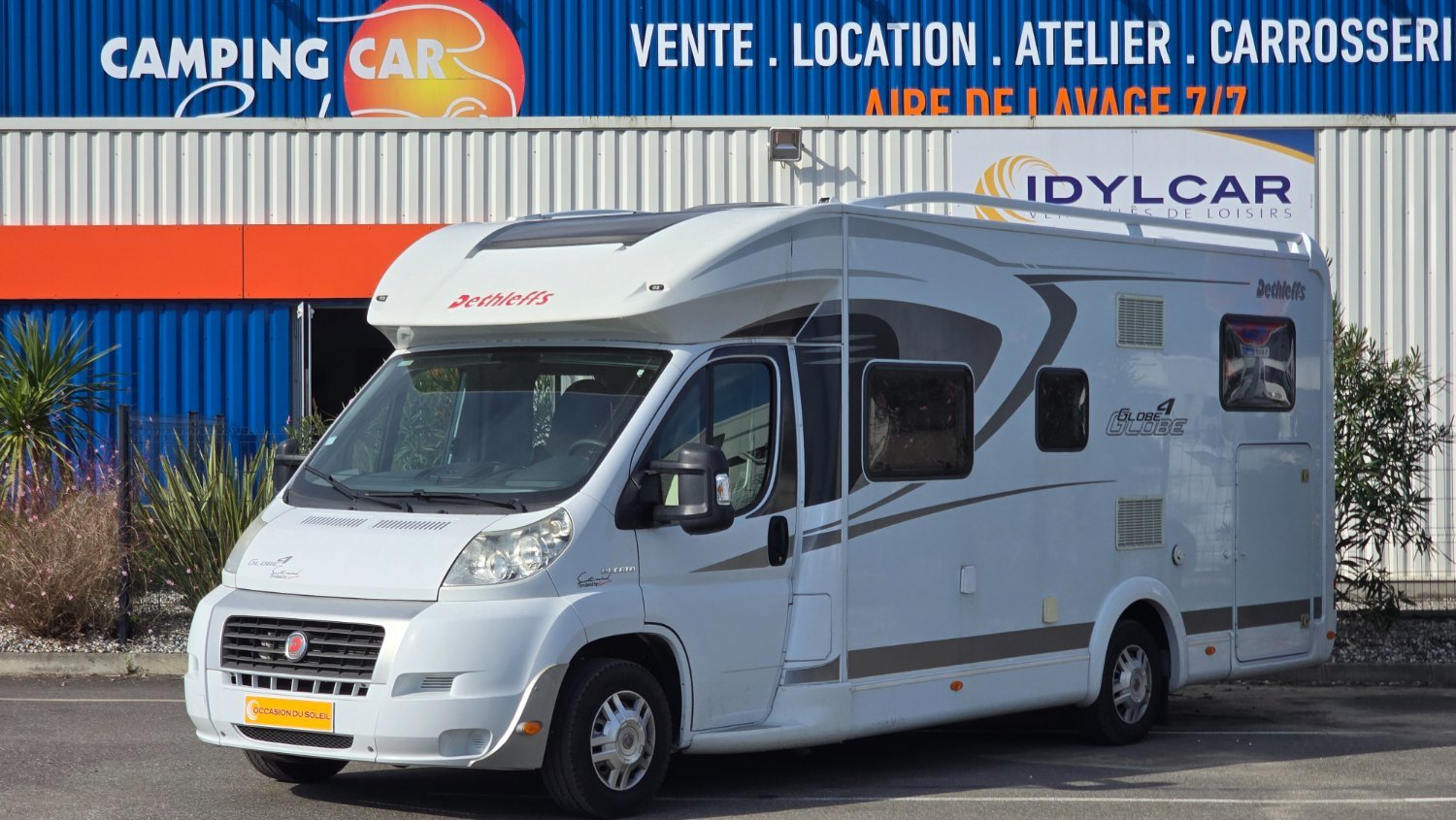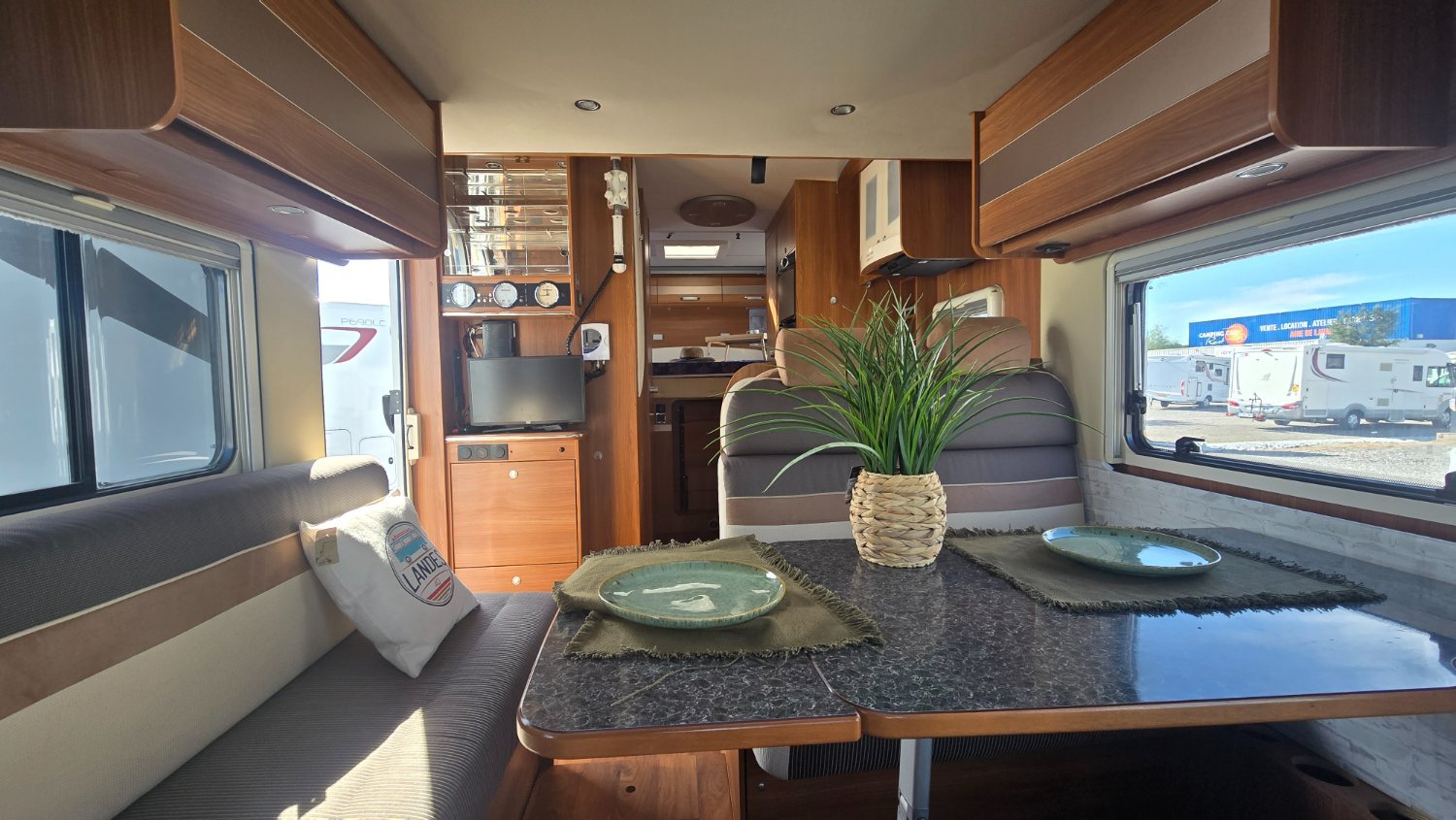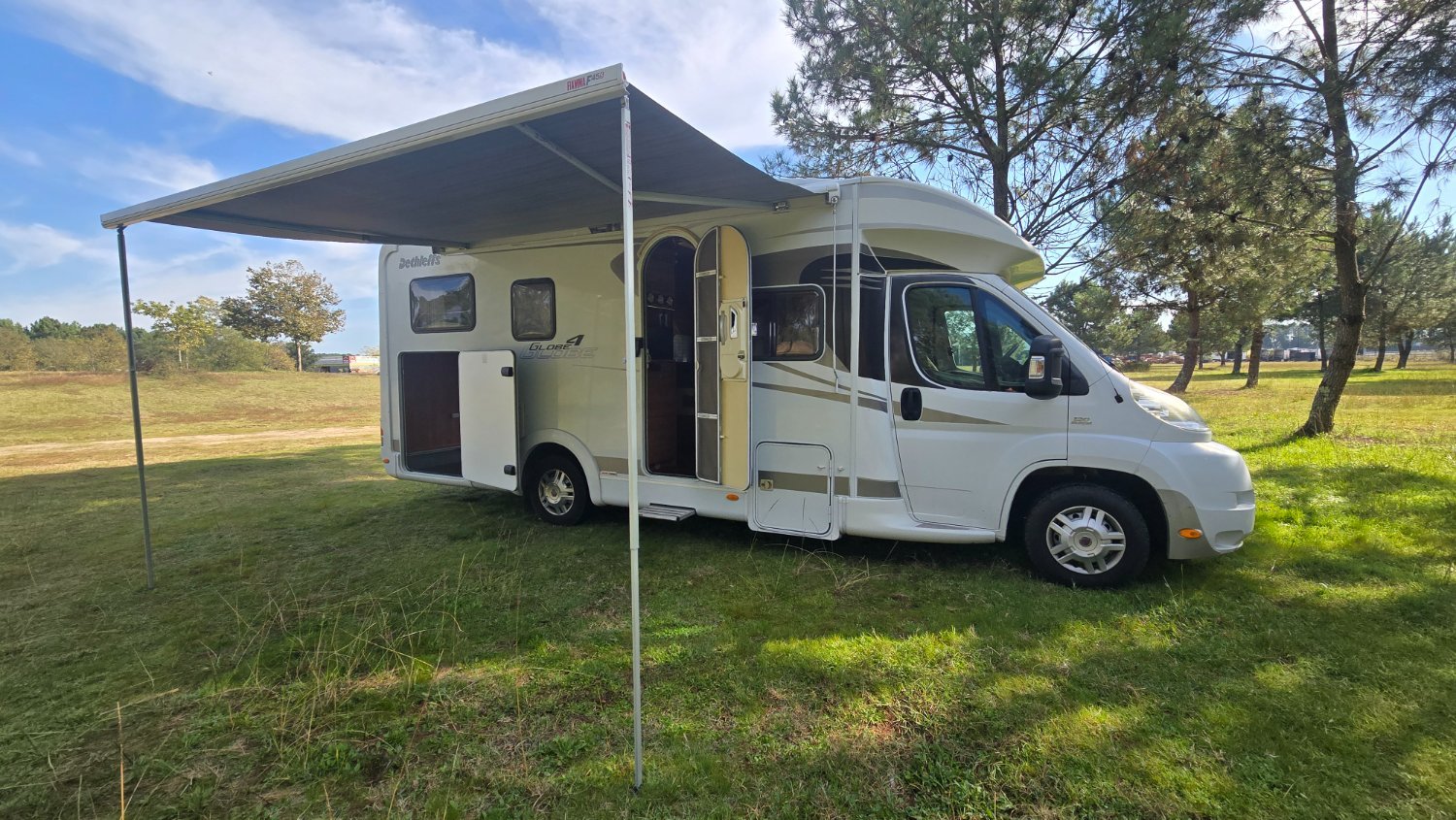 Magnifique profilé de DETHLEEFS avec salon, salle d''eau, cuisine avec réfrigérateur, lit arrière sur soute et pour finir grande lit pavillon.