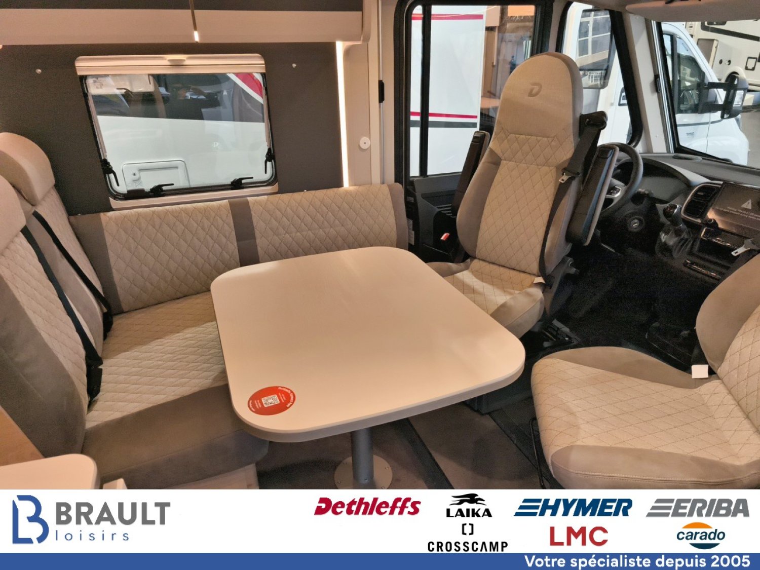 - Pack Active : Climatisation de cabine automatique, compteur de vitesse numérique avec instrument combiné 7" et chargeur de téléphone sans fil dans la console centrale, Frein de stationnement électrique, Caméra de recul (non compatible avec l'écran d'origine porteur), Système de navigation Dethleffs y compris DAB+, Truck Navigation, Apple CarPlay et Android Auto sans fil, Réservoir eaux usées isolé, Commande digitale CP Plus pour chauffage / chauffe-eau à air pulsé, Pré équipement climatisation de toit, Pré équipement caméra de recul, Tissu Jupiter, Light Moments : habillage de baie du salon illuminé, Store Omnistor 5,0m (manuel)