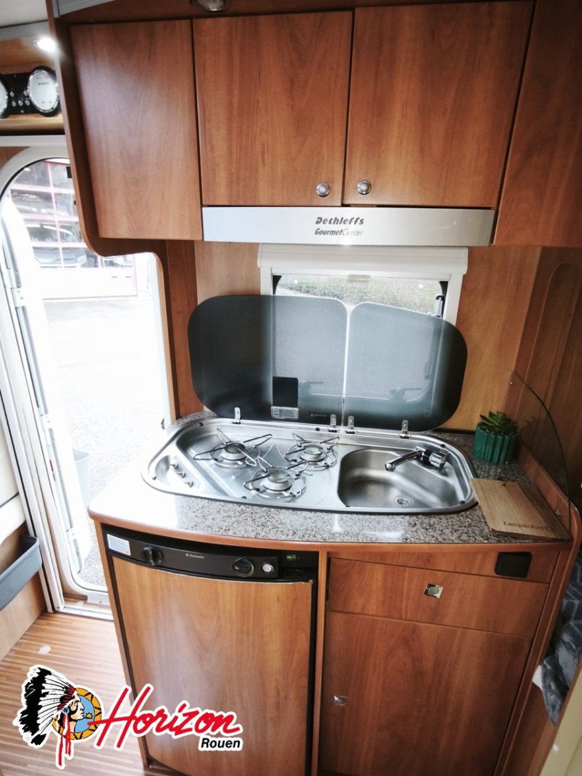 La liberté vous appartient, pas de restrictions : le GLOBEBUS T est pourvu de nombreux éléments de confort, comme un plan de travail incorporant un réchaud à 3 feux, un grand frigo et de nombreux rangements.