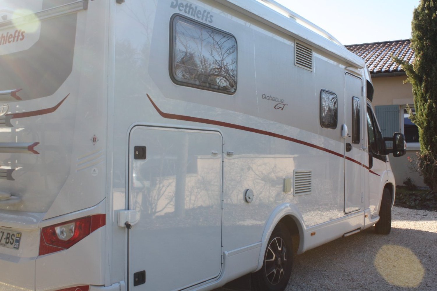 Globebus T6 , camping car compact à Lits jumeaux , parfaite état, peu servi , avec nombreuses options , dont le pack GT white avec douchette extérieure , batterie supplémentaire , réservoir eaux usées isolées. Kit panneau solaire. Installation récente d'un réservoir GPL Borel , pour la fourniture du combustible de chauffage , eau chaude et réfrigérateur, d'un Convertisseur afin de recharger en 220 V , en roulant . Detecteur monoxyde , tv dvd . Boulon antivol pour les jantes , pneus avant usure 50%.