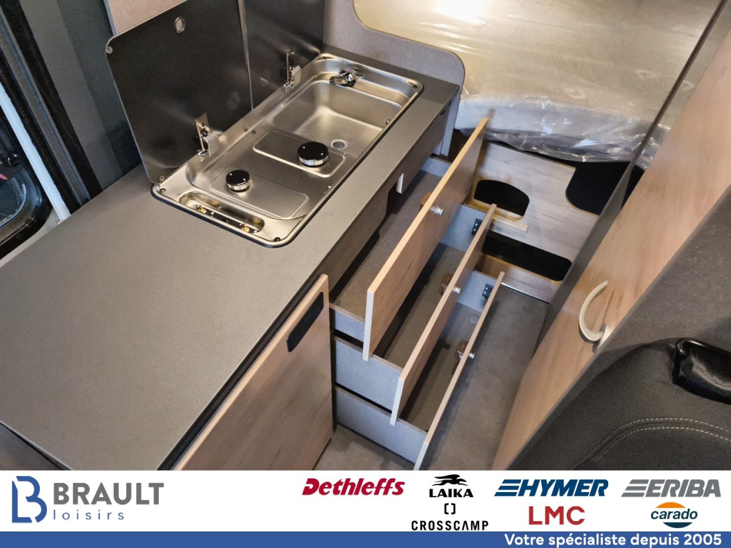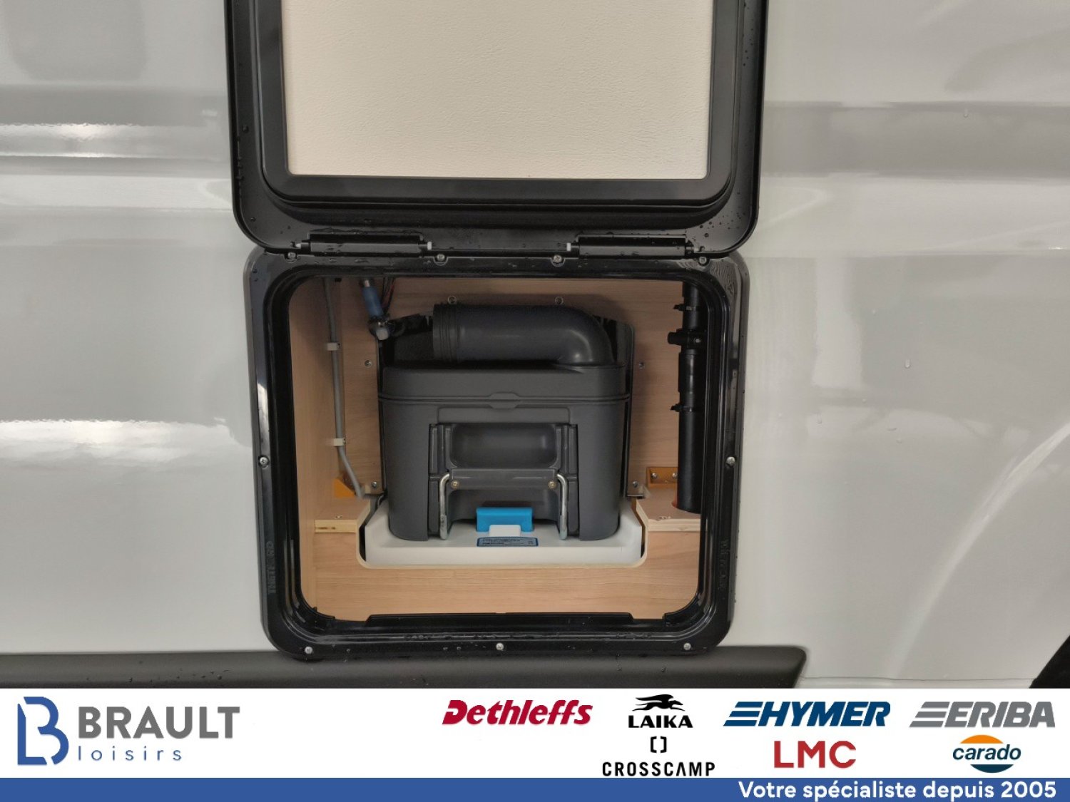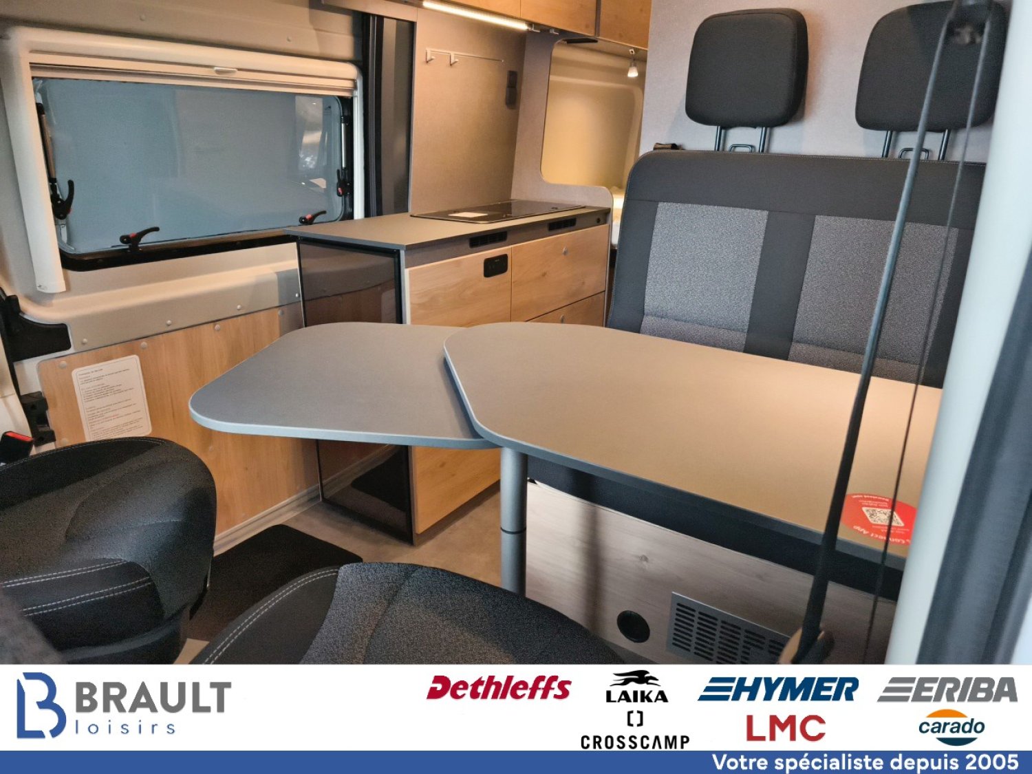 Jantes aluminium 16'' (boîte manuelle : jantes noires, automatique / maxi : jantes bicolores), Volant et pommeau de levier de vitesses en cuir, Techno Trim Prise USB (remplace l'allume-cigare), Store plissé dans la cabine de conduite : pare-brise, Store plissé dans la cabine de conduite : vitres latérales Moustiquaire de porte, Marchepied électrique, Baie dans le cabinet de toilette Lanterneau Midi-Heki 70 x 50 cm au-dessus de la dînette avec moustiquaire et store occultant, Rallonge de table pivotante, Pré-câblage pour caméra de recul Pré-équipement pour panneaux solaires, Pré-équipement TV 12V & prise TV, raccordement satellite, Bandes lumineuses à LED, Prise 230V dans le meuble haut avant gauche (dînette), Prise 12V à l'arrière, en bas à gauche, Double prise USB dans la partie arrière gauche