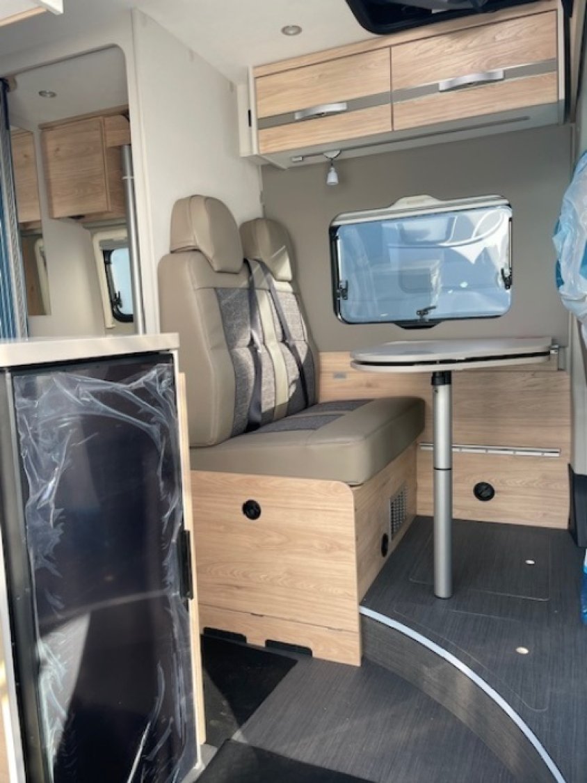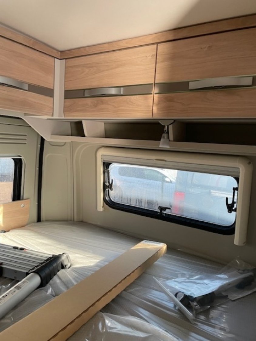 PACK CONFORT : BAIES A CADRE, BAIE AVEC MOUSTIQUAIRE ET STORE OCCULTANT, STORE EXTERIEUR, TIROIR TELESCOPIQUE A L ARRIERE, MOQUETTE SURJETEE, ECLAIRAGE AUVENT, RALLONGE DE TABLE PIVOTANTE