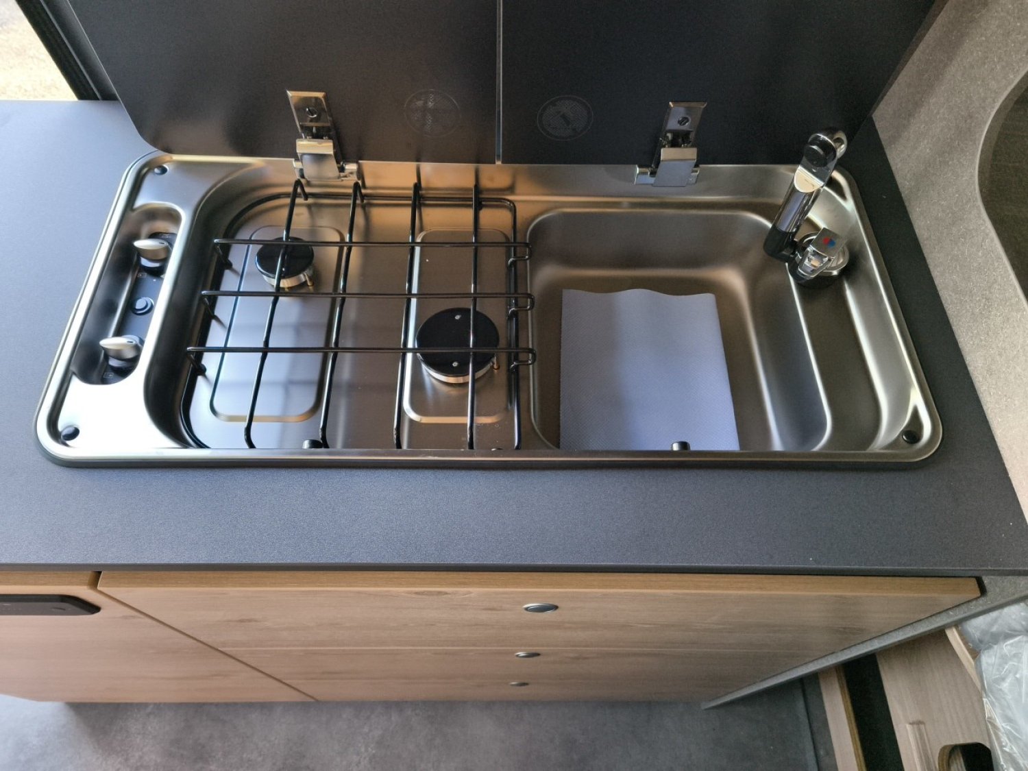 - Toit relevable noir avec couchage double et assistance électrique à l'ouverture.