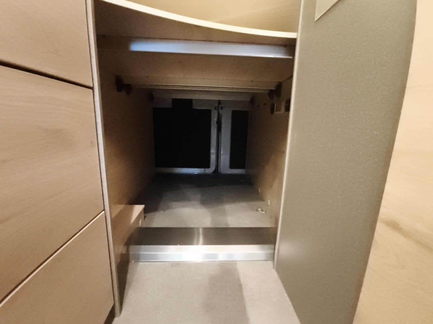 Prise 230V dans le meuble haut avant gauche (dînette), Prise 12V à l'arrière, en bas à gauche