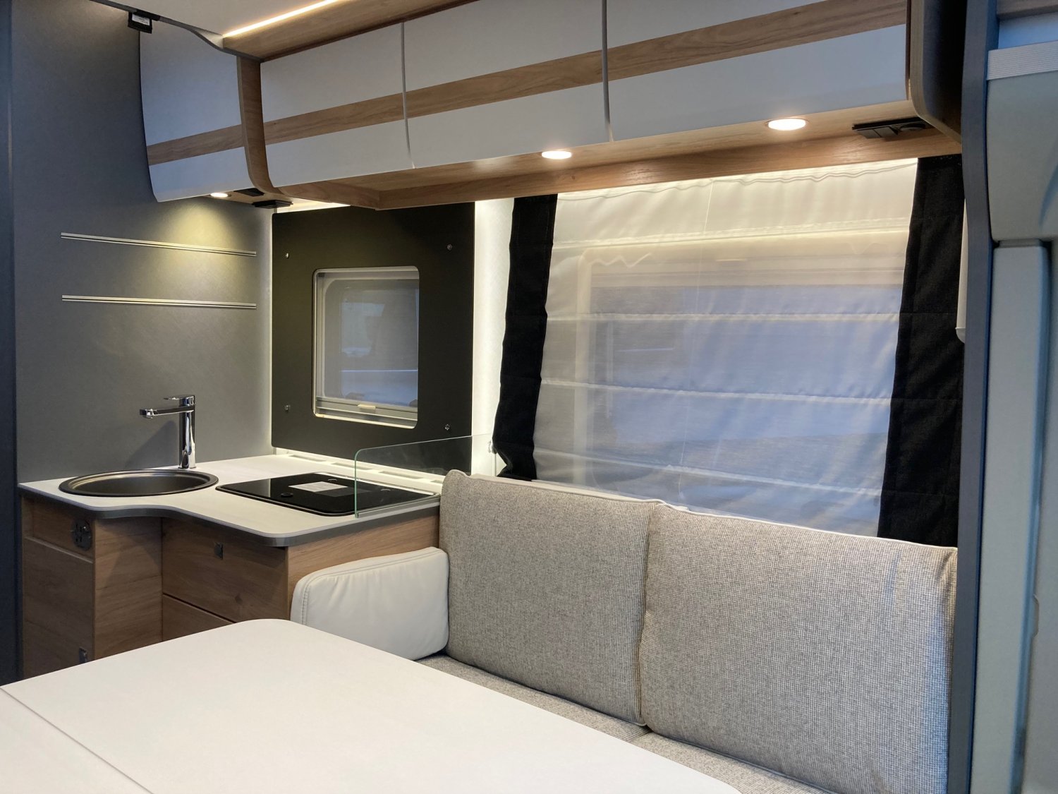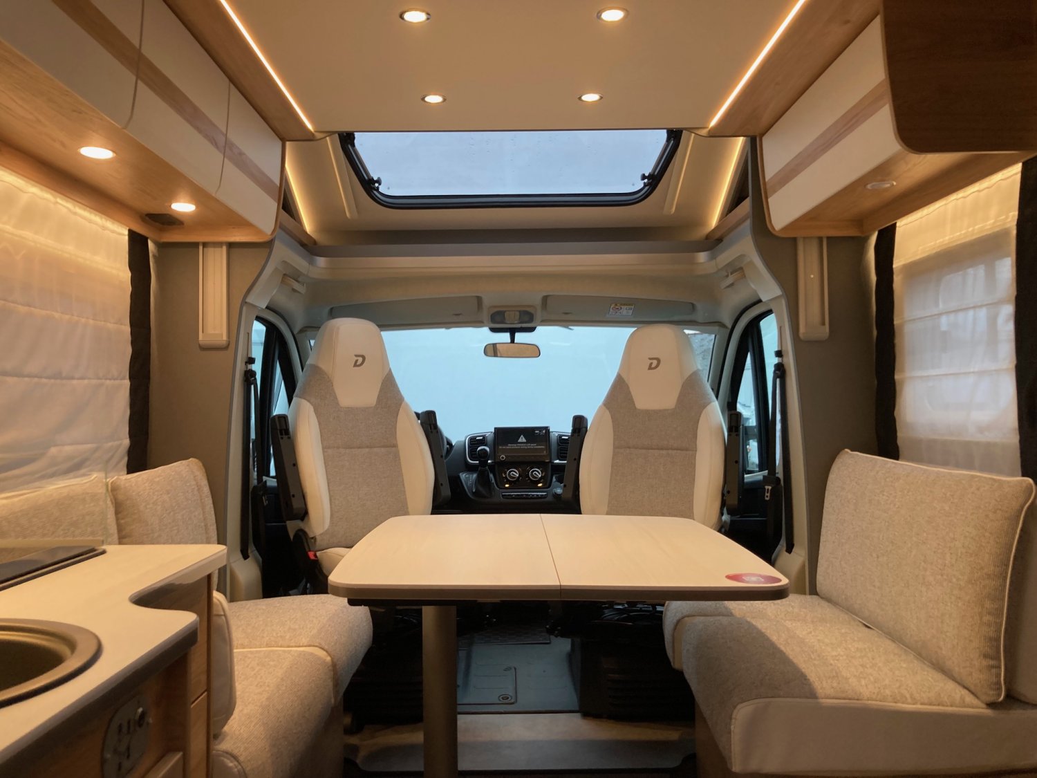 Pack active : Caméra de recul, Commande digitale CP PLUS, Système de navigation Dethleffs, apple carplay, Android auto sans fil, Eclairage indirect, Tissu HERON, Design extérieur Active, (support de feux arrière avec diffuseur noir, stickage spécifique, lame de pare-choc avant rouge) Lit de pavillon électrique