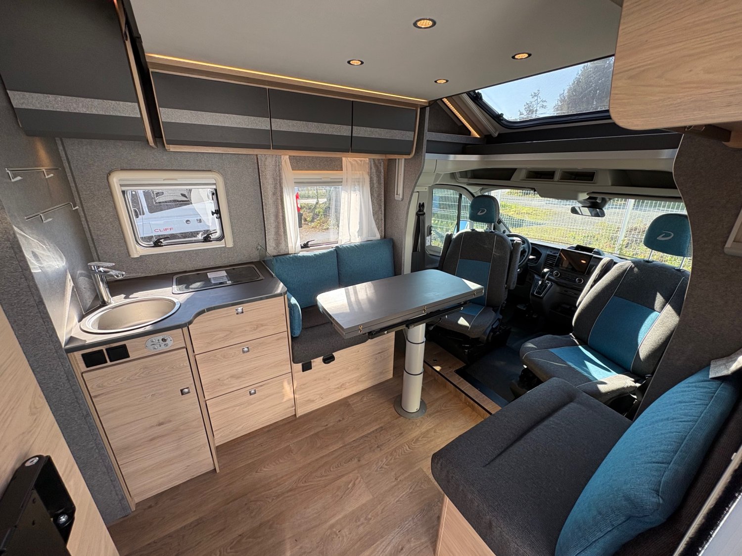 Camping-car lit central, lit pavillon, banquette face-face boite automatique