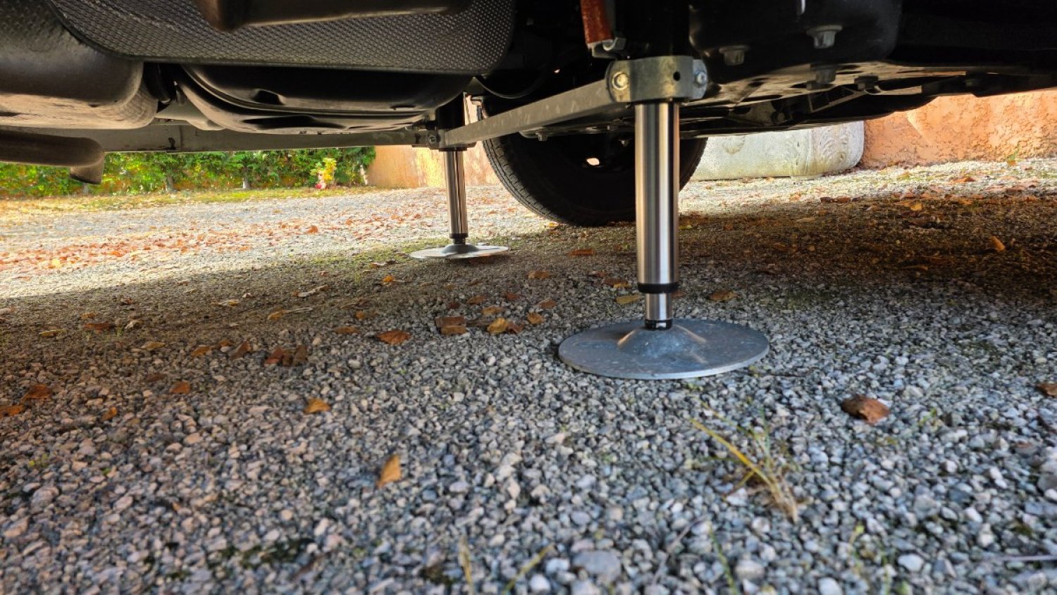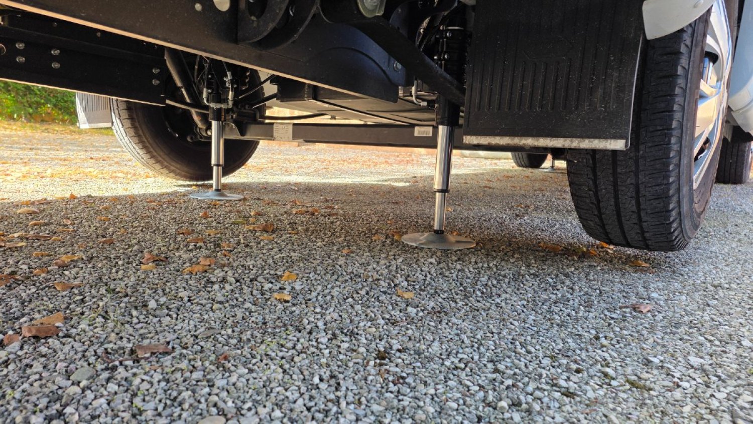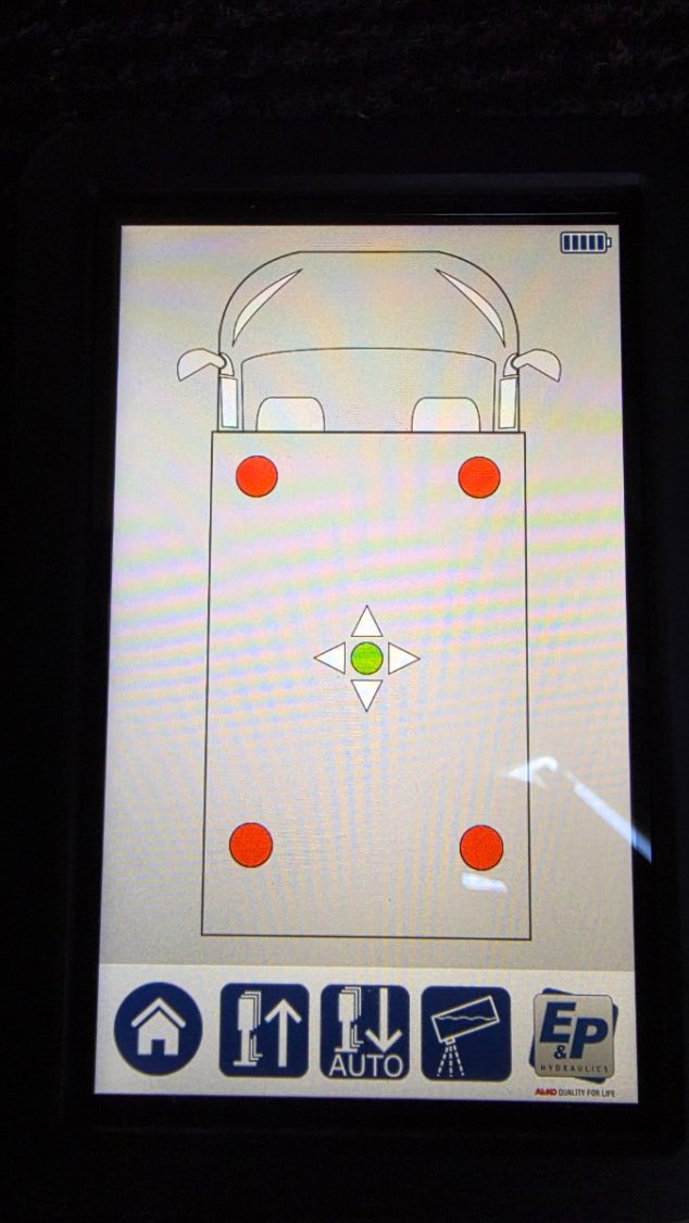 Plus besoin de calles pour la mise à niveau, camping-car équipé de 4 VERINS HYDRAULIQUES EP avec tableau de commande tactile portable, moins de 2 minutes pour la mise a niveau de votre camping-car