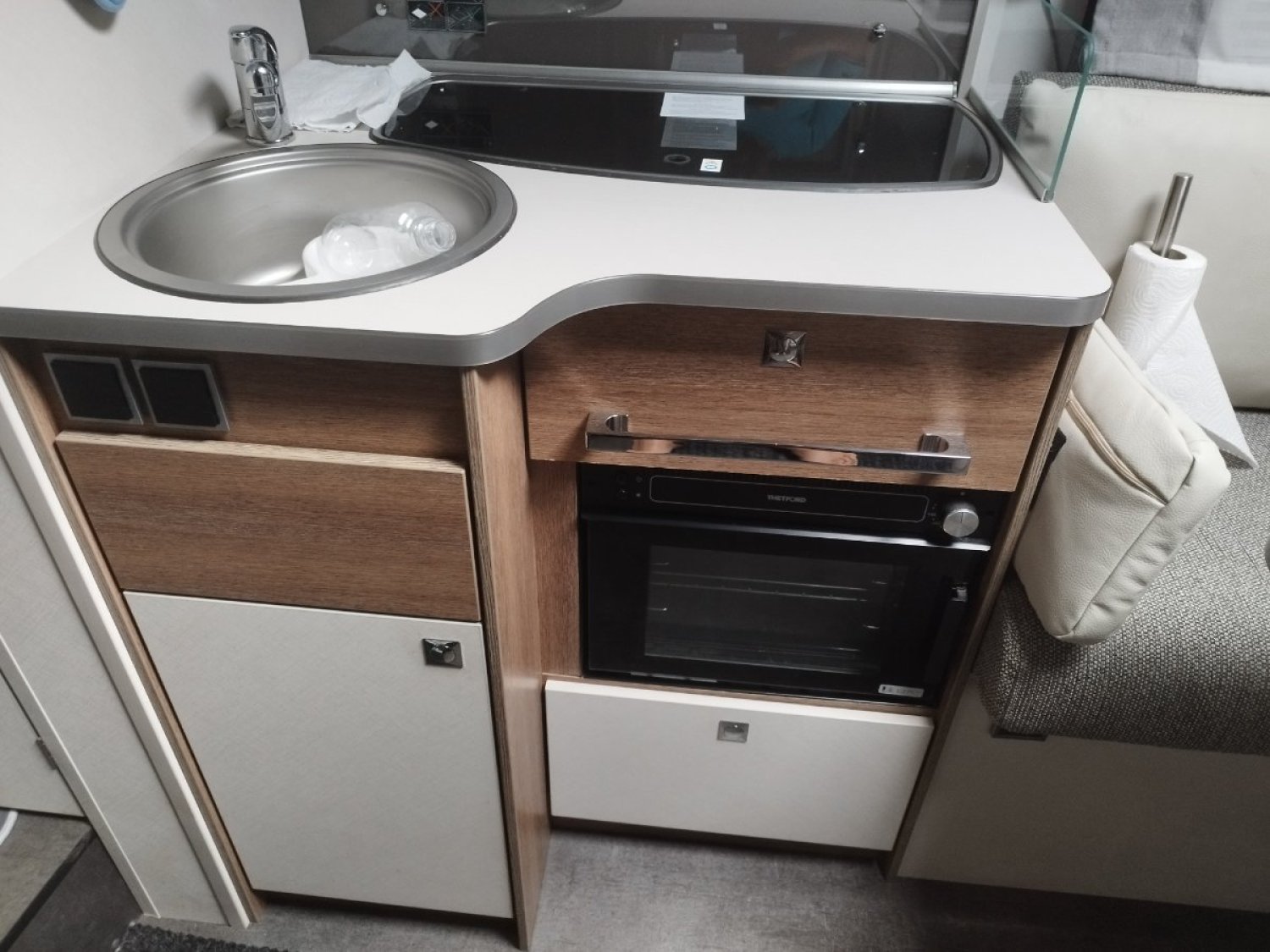La cellule est équipée d'un salon face à face, une table repliable pour bien libérer le passage, coffre sous les sièges, Convertisseur 12v/220v 1000W, nombreux rangements, TV avec antenne satellite automatique et antenne TNT, éclairage leds dans toute la cellule, une climatisation réversible TRUMA est installée sur le toit.