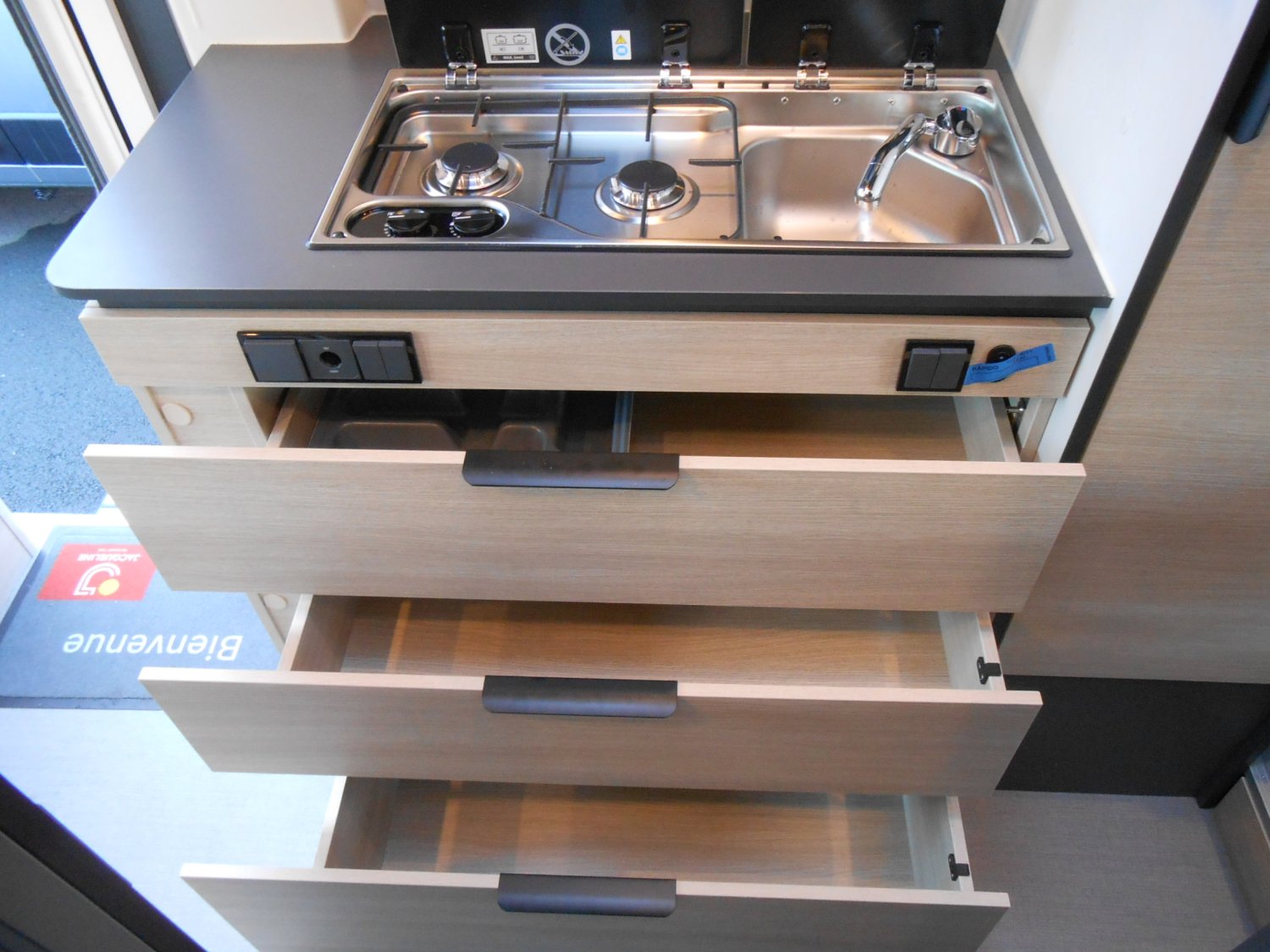 TIROIRS AVEC COULISSES A RAPPEL,FERMETURE CENTRALISEE,ALARME