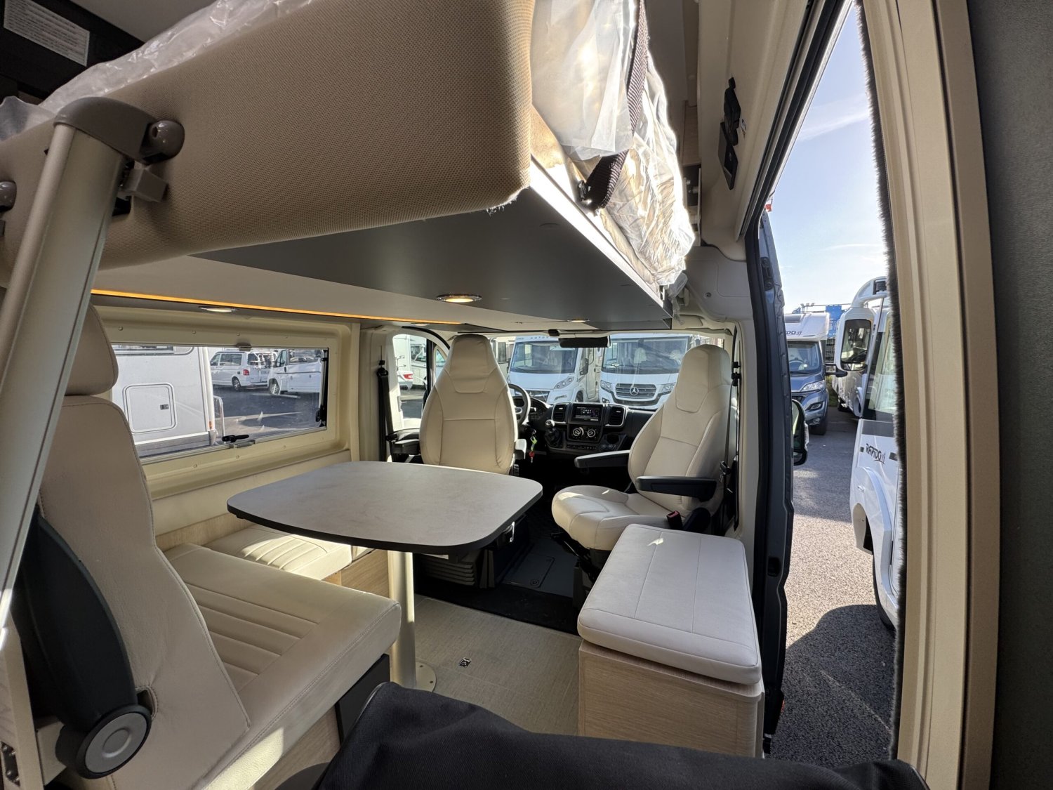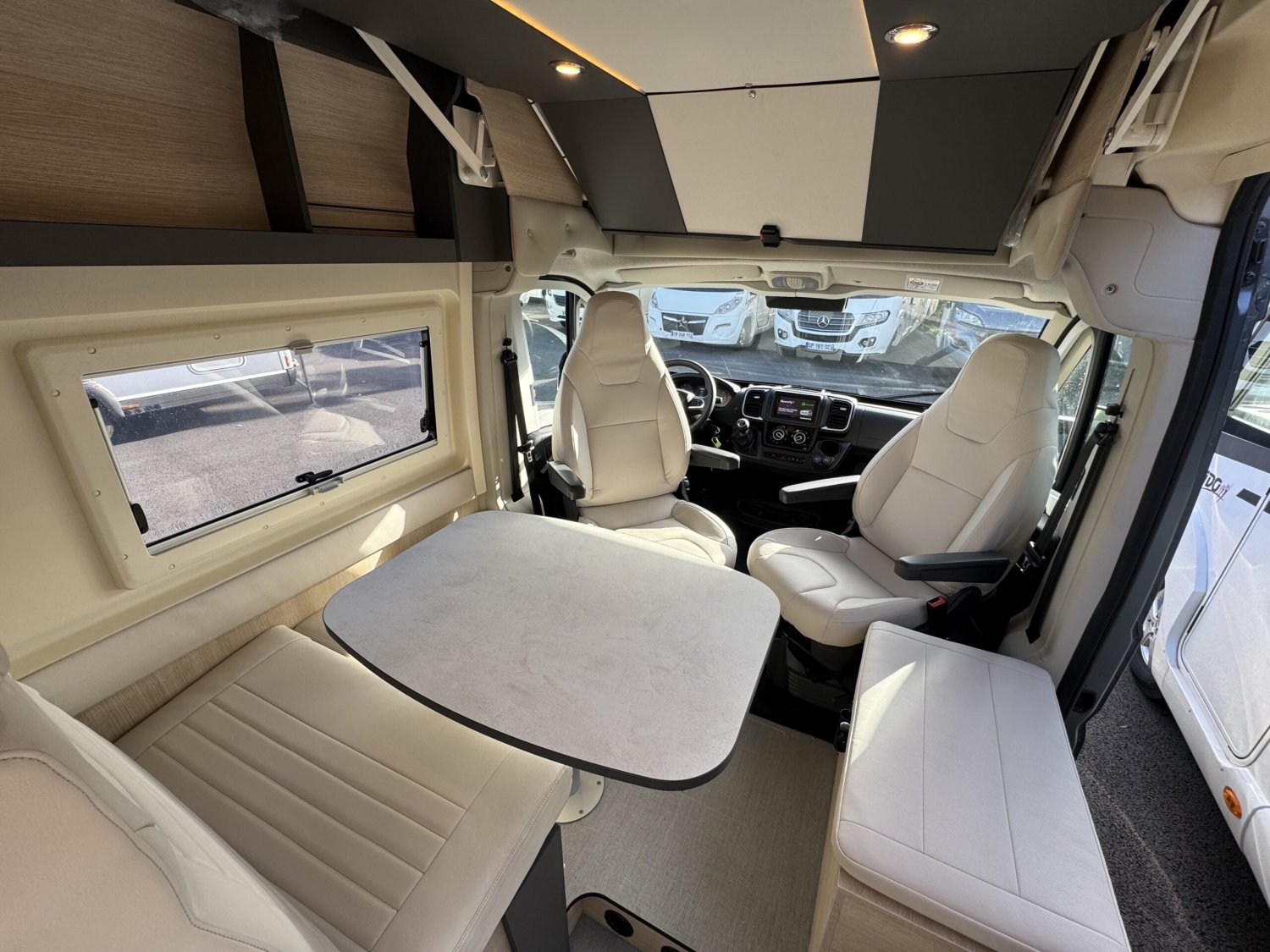 peinture pare choc avant couleur carrosserie – porte moustiquaire latérale – marche pied électrique – découpe cabine – gouttière porte latérale avec éclairage led – chauffage carburant 4000w et chauffe eau gaz – Ambiance tissus Arizon – traction + – 2ème clef télécommandée – Roue de secours – store plissés de cabine – 2 batterie AGM – station mulimédia 6,8’’ carplay android auto – caméra de recul – volant et pommeau vitesse cuir – commande radio au volant – douchette ext eau froide – jantes alu 16’’ – contrôle pressions des pneus – système de fixation isofix – décoration exclusive extérieur Addict – Salle d’eau duospace avec paroi pivotante