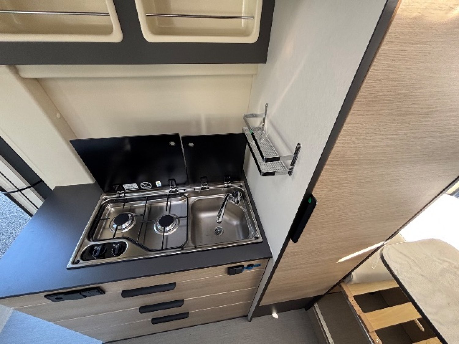 2eme batterie, Camera de recul, Chauffage gasoil, Climatisation manuelle cabine, Douchette ext, Eclairage sous plan de travail, Gouttiere laterale led, Isolation cellule XHP, Marche pied lateral, Moustiquaire porte latérale, Radio dab, Réfrigérateur 149L, Régulateur/limiteur de vitesse, Véhicule neuf d exposition