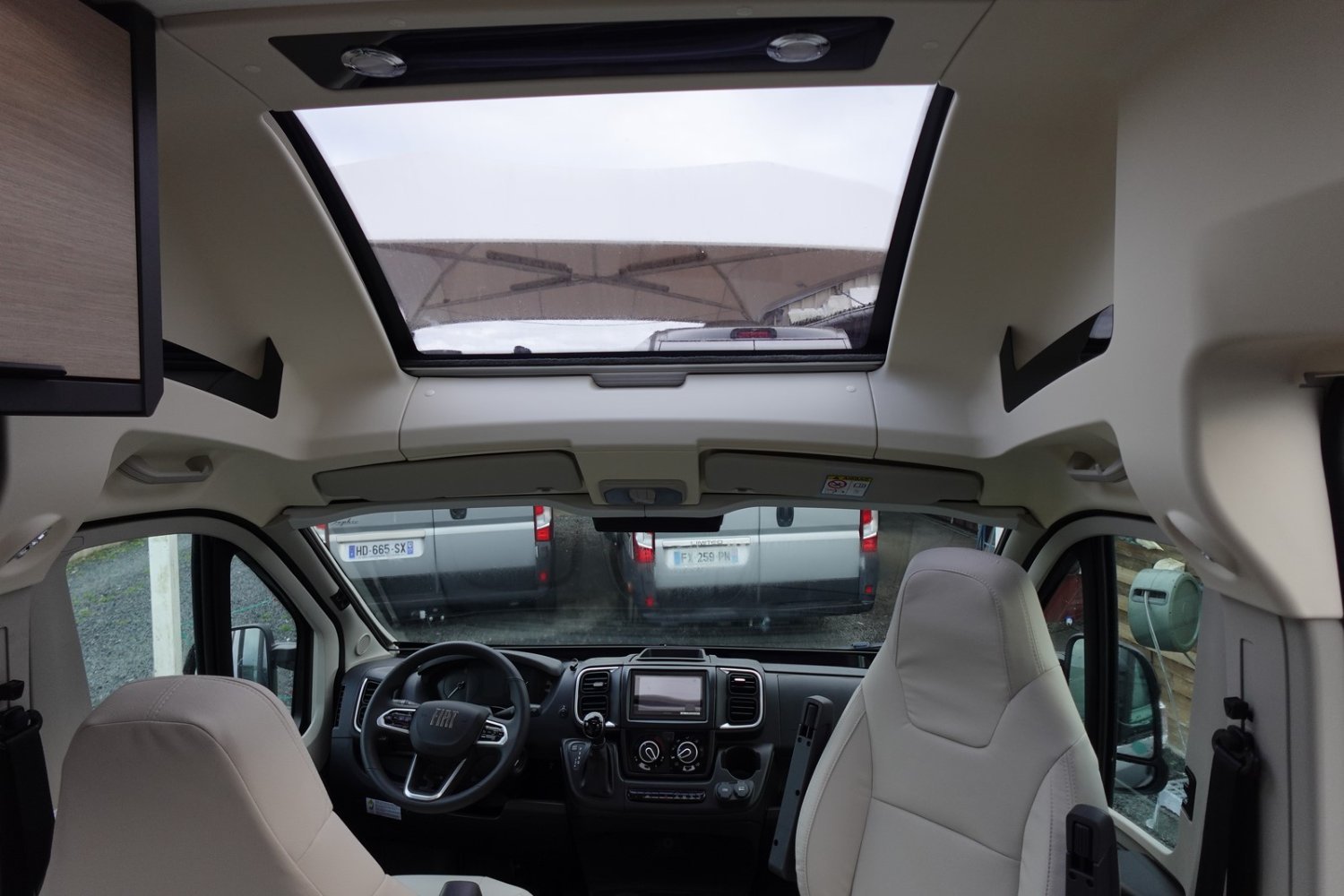 (Commande au volant pour la radio, Pare-chocs avant couleur carrosserie, Skid Plate noire, Feux antibrouillards, Traction +, Hill Descent Control, Moustiquaire de porte latérales, Store pare-brise et baies cabine, Marchepied électrique, Simili cuir, Chauffage carburant Webasto 4000 W, 2ème cled télécommanéde, Gouttière porte latérale avec éclairage LED intégré, Découpe cabine, 2 batteries cellule AGM, Station multimédia Pioneer Apple Car Play / Android Auto, Caméra de recul, Douchette extérieure, Jantes 16 pouces en alliage, Volant cuir, Habillage gris sur aérateurs, Toit panoramique, Skyview, Isofix, Couchage d’appoint)