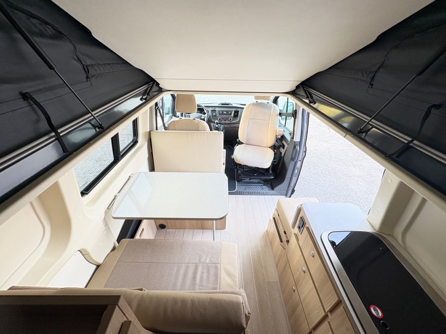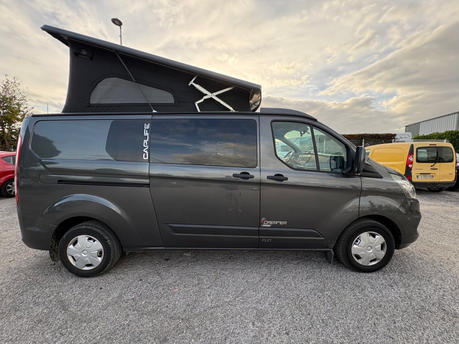 Superbe Dreamer Cap Life 2021, première main, sur base Ford Transit 2.0 130 ch en boîte manuelle, fiable et économique. Implantation très recherchée avec salon face à face et nombreux rangements. Toit relevable offrant un second couchage et une grande hauteur intérieure. 4 places carte grise / 4 couchages, idéal pour les voyages en famille.