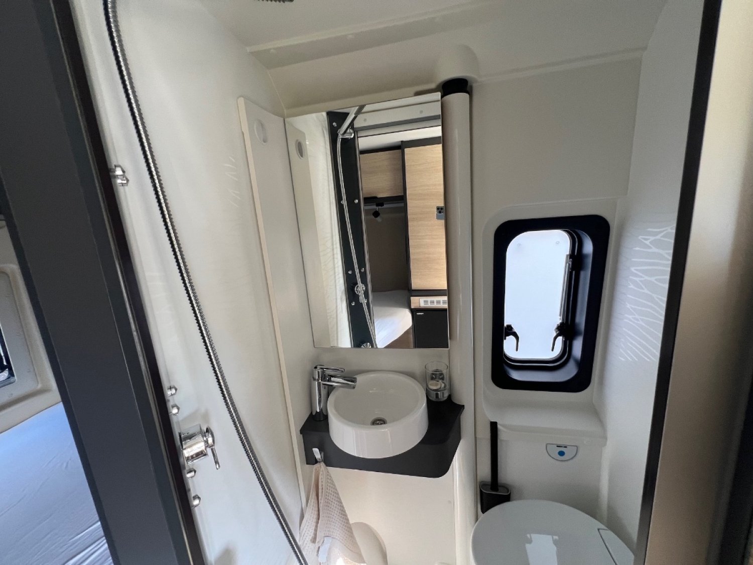 Salle de bains duo'space avec paroi pivotante (WC, vasque, douche)