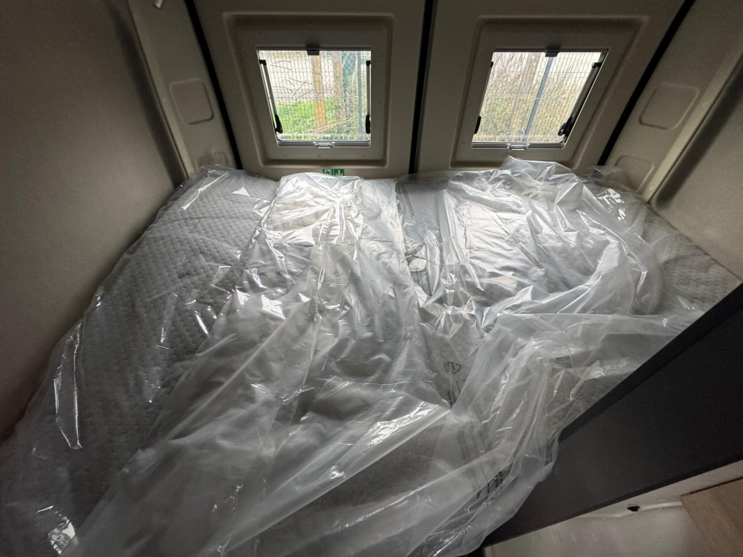 Eau propre 110L – Grises : 85L – Frigo 90L compression – gaz 1x13kgs lit toit relevable 200x130cm – lit transversal 195×132/108cm