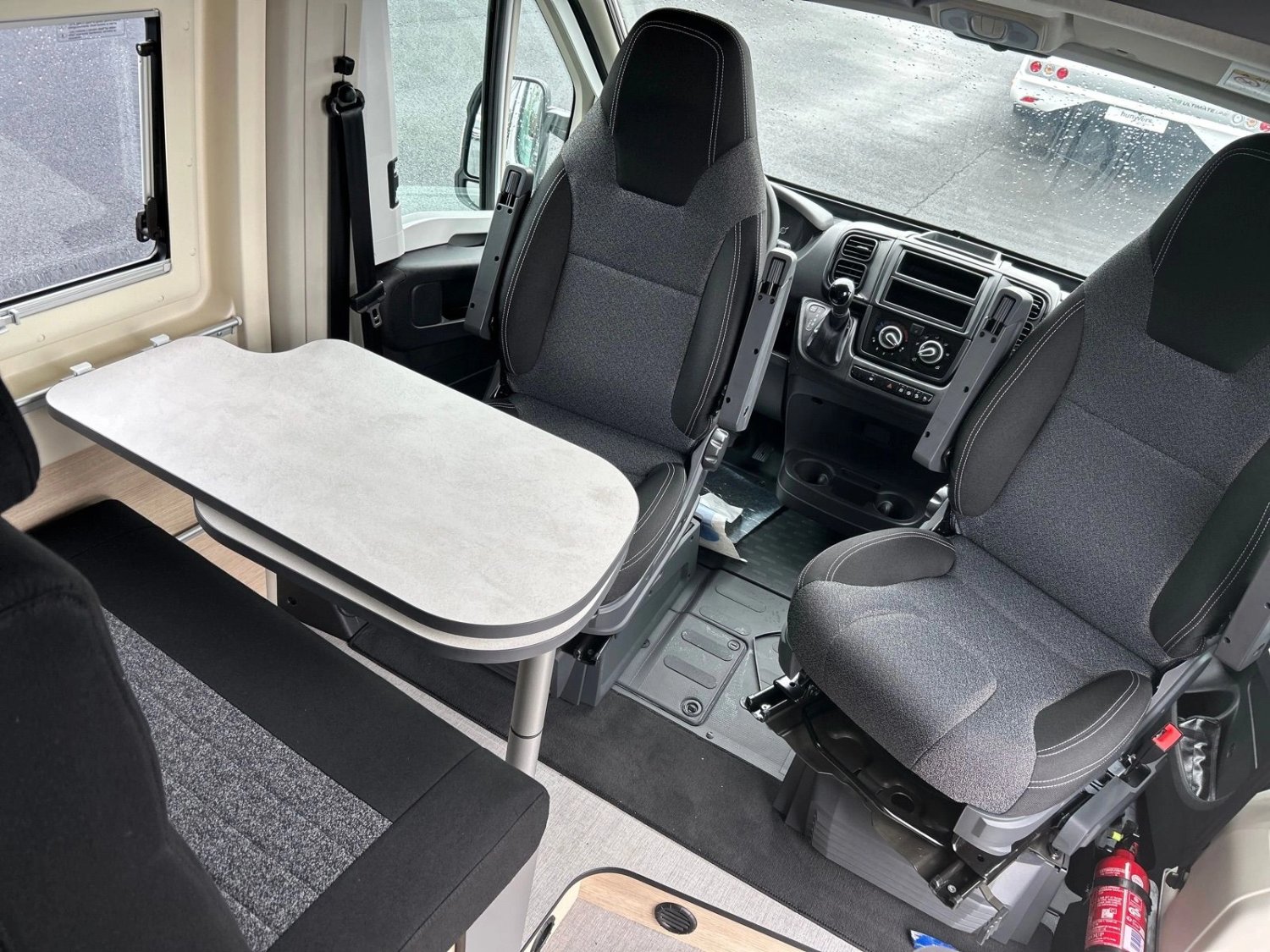 - Sièges cabine réglables en hauteur, pivotants avec 2 accoudoirs réglables