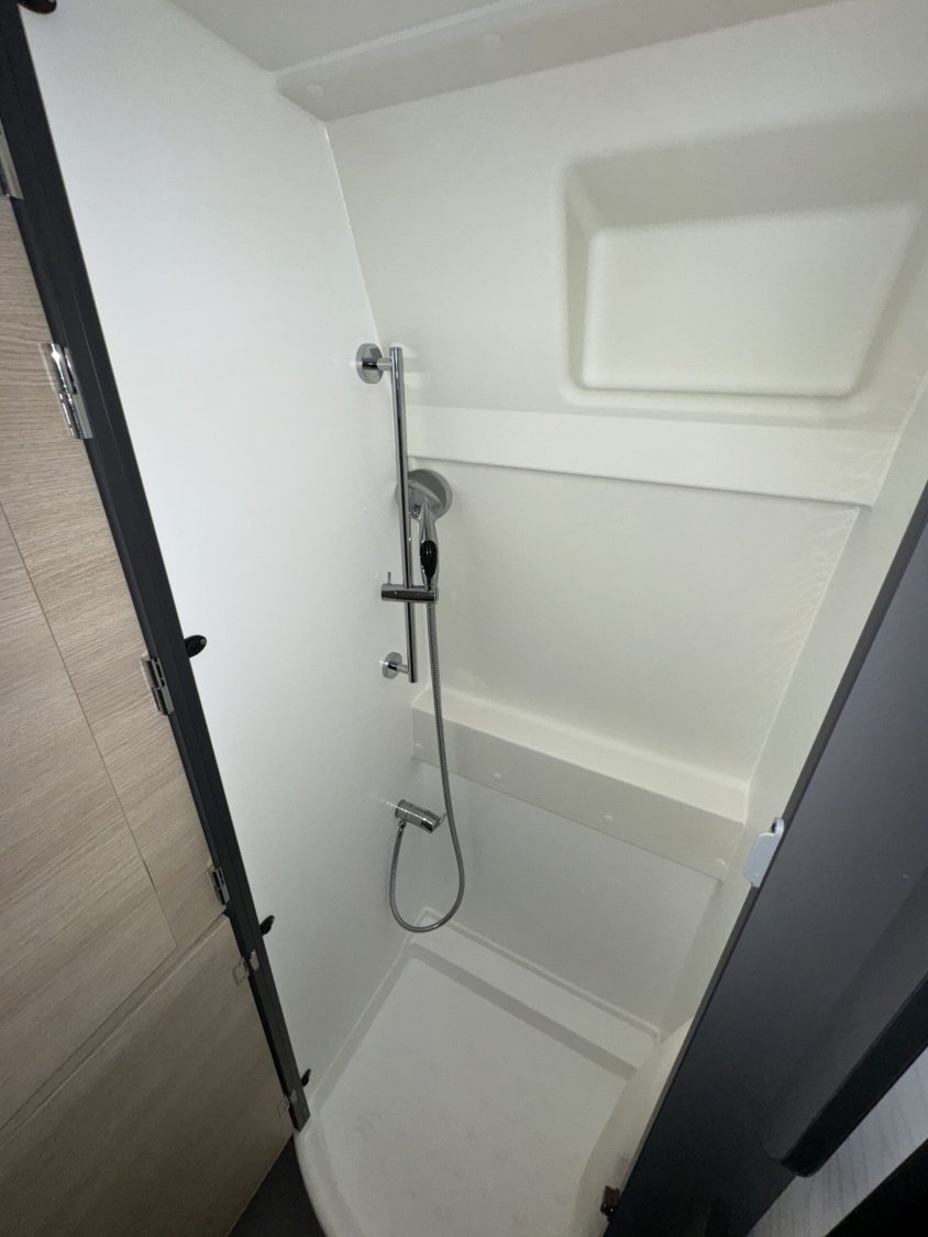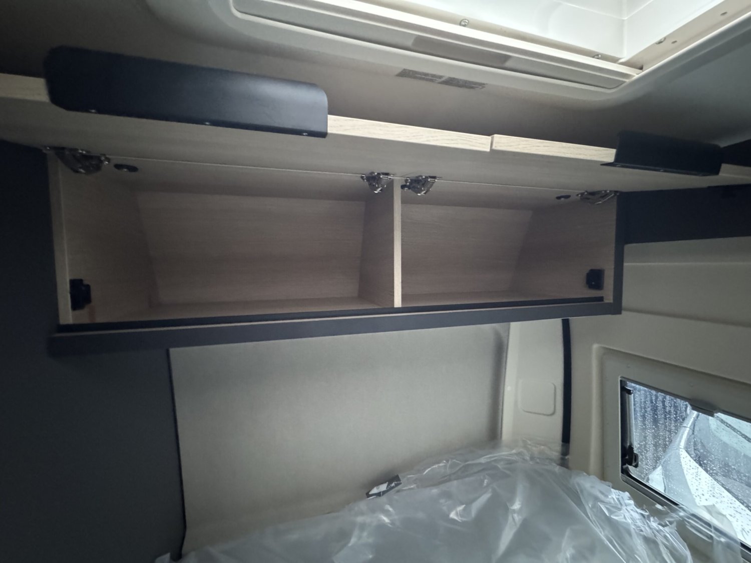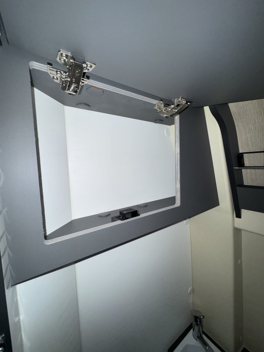 marchepied électrique, stores pare-brise et baies cabine double pliées et cassette, porte moustiquaire ouvrant latéral