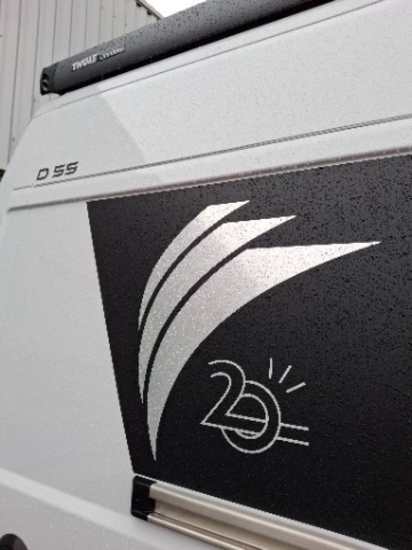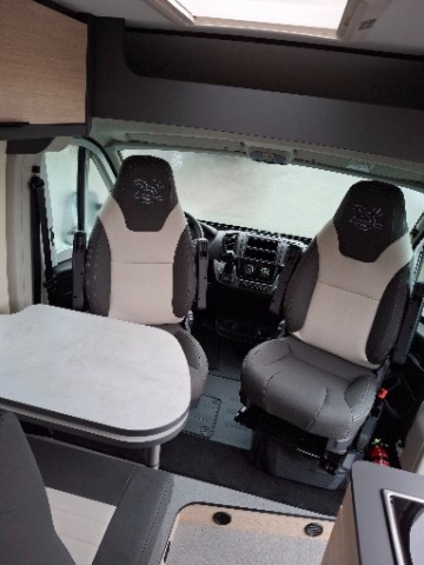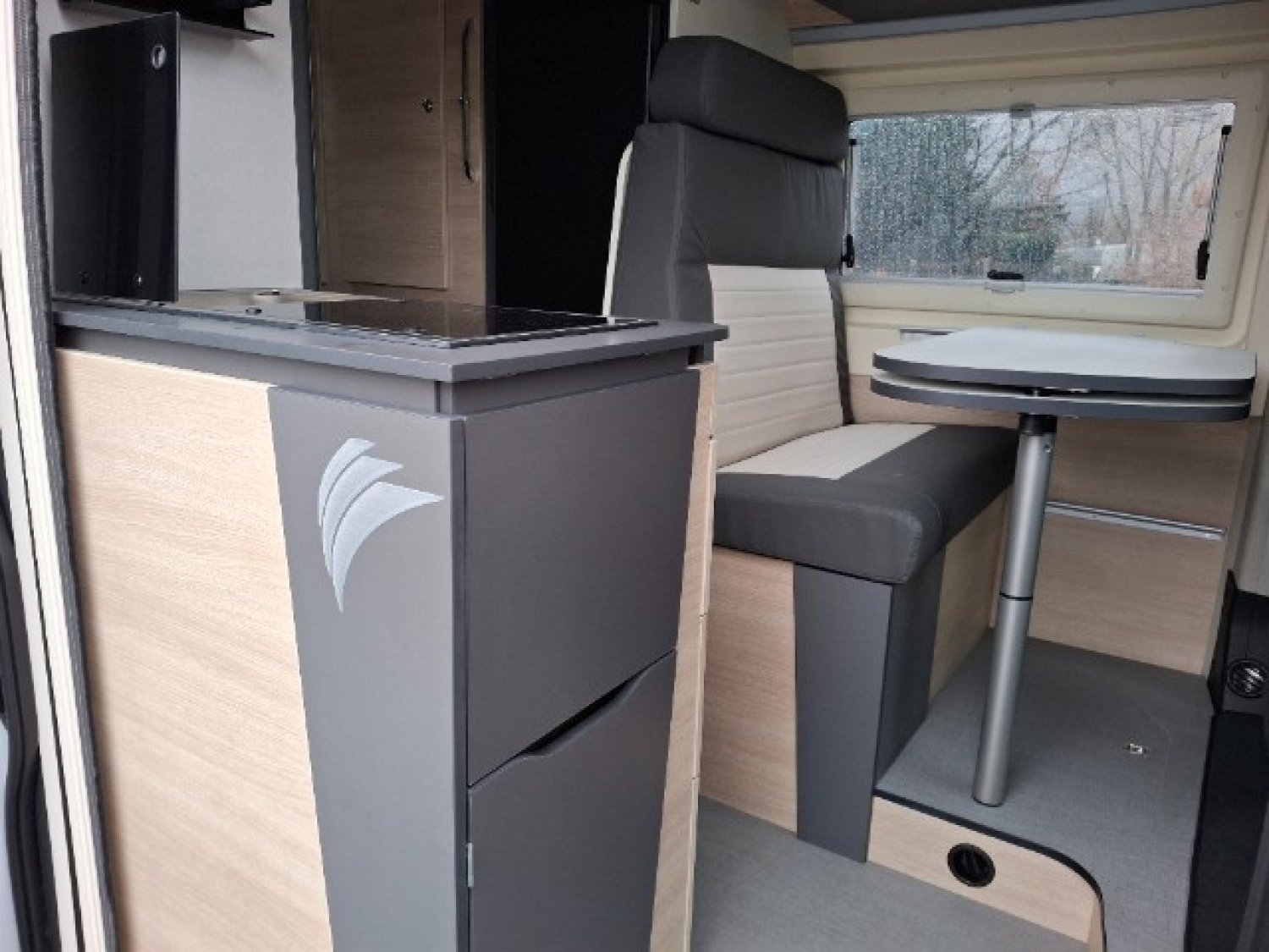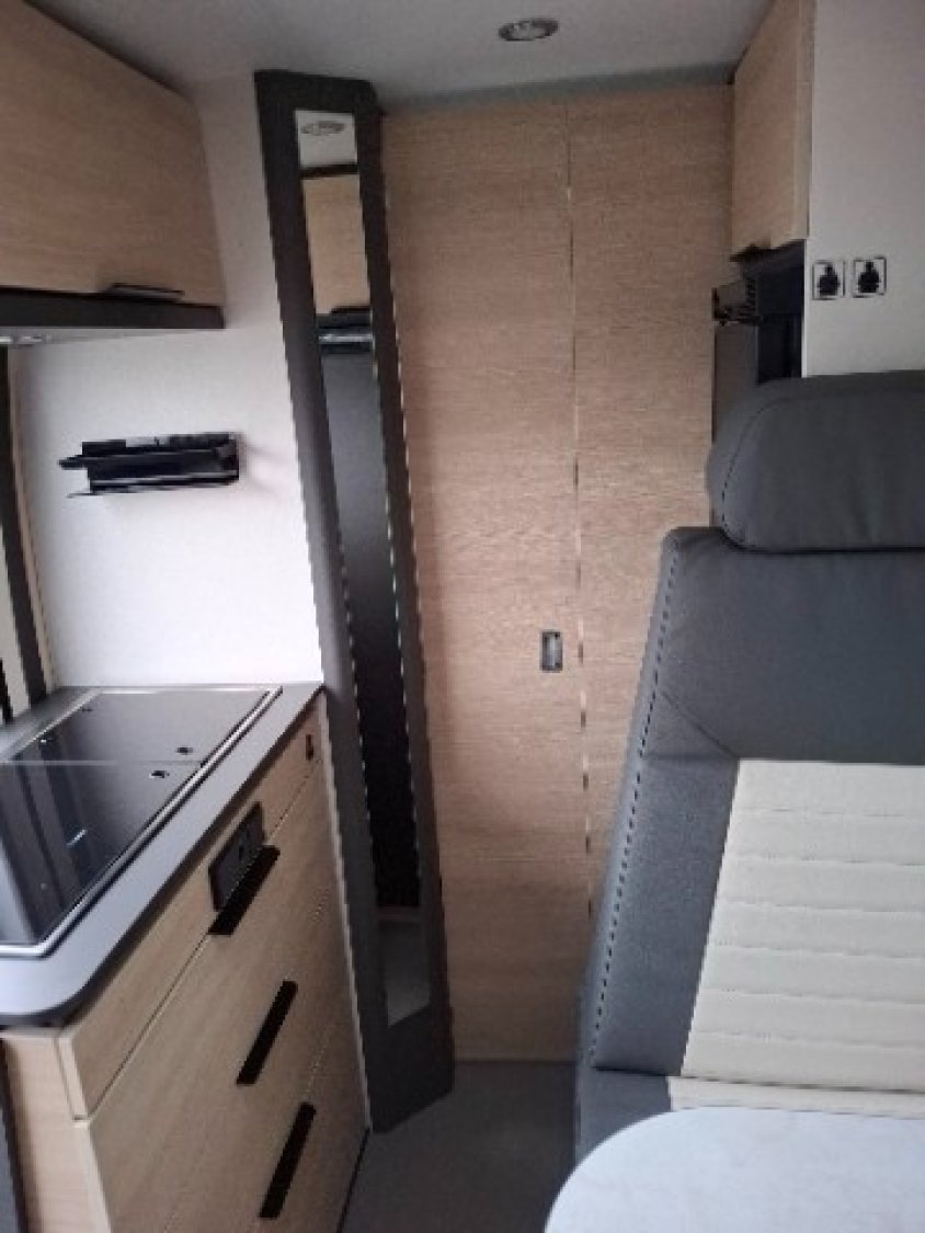1 batterie Lithium, 1 panneau solaire 150W, Boite automatique, Chauffage gasoil 4kw, Marchepied électrique, Porte moustiquaire ouvrant latéral, Refrigérateur 149 l, Store auvent, Stores pare-brise et baies cabine double pliées et cassette, Vehicule neuf d exposition