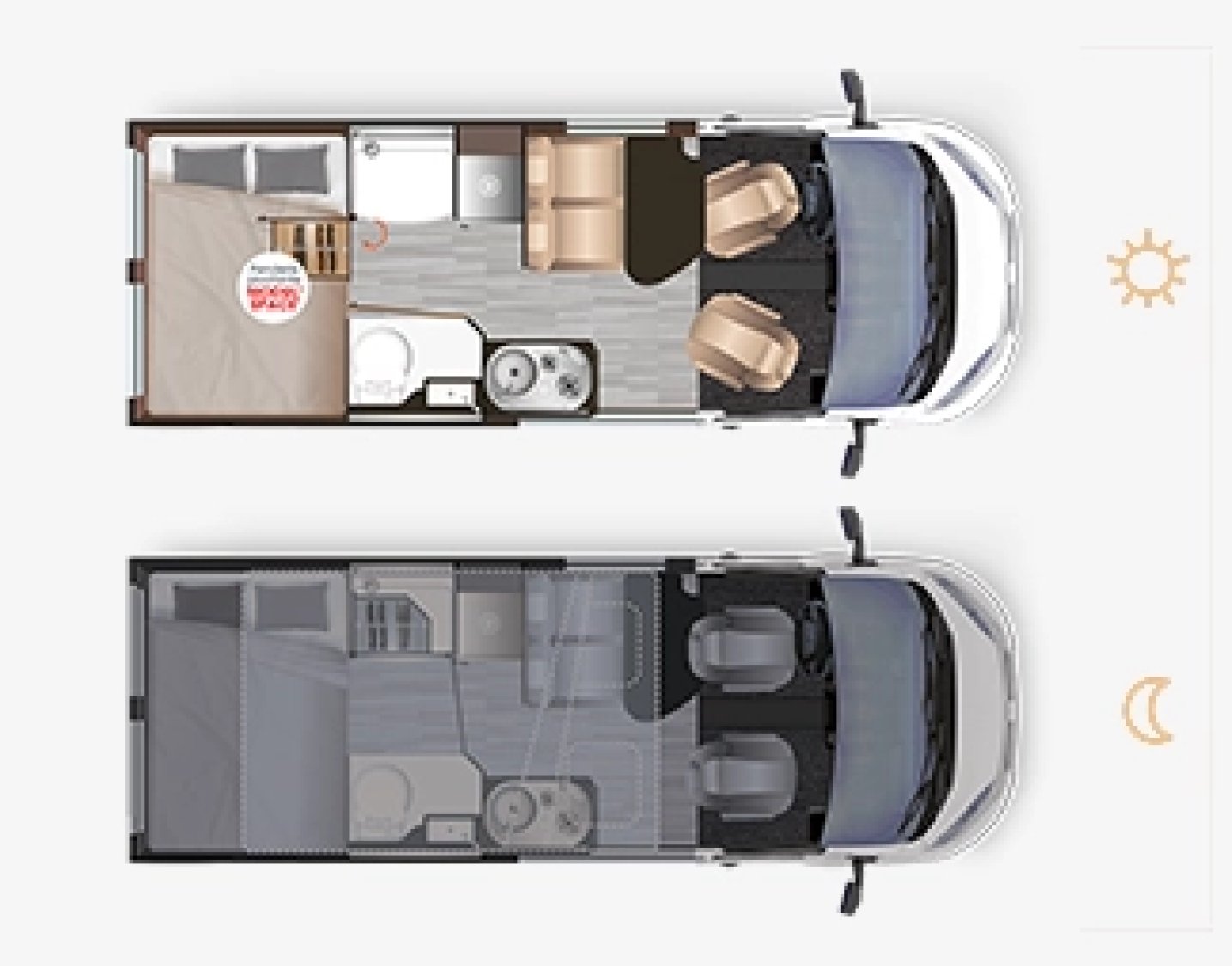 - PACK START : - Porte moustiquaire ouvrant latéral - Stores pare-brise et baies cabine isothermes double plissés à cassette - Marchepied électrique