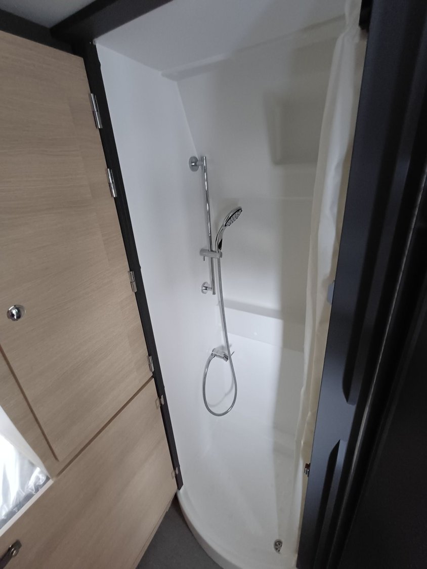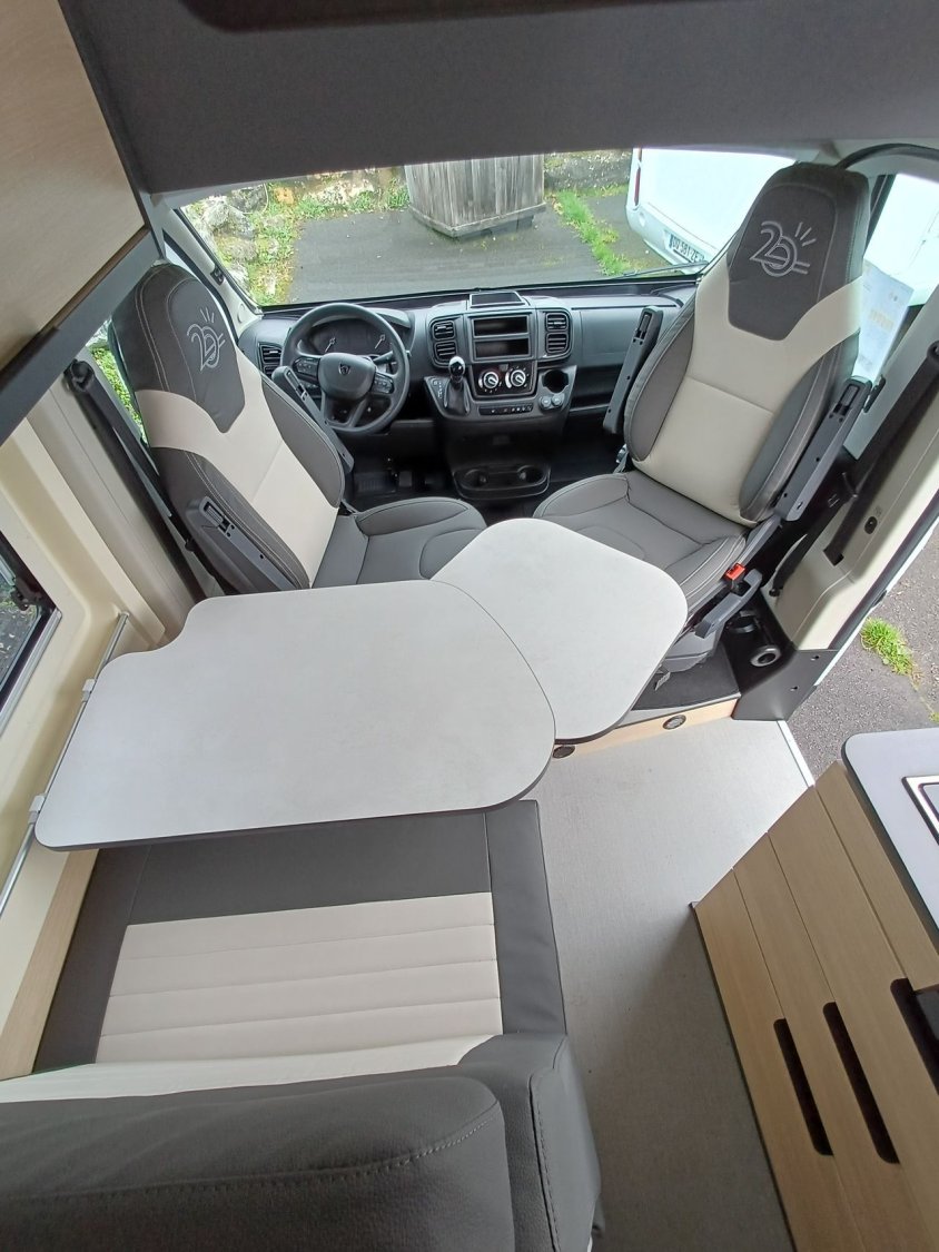- Pack Start : marchepied électrique, stores pare-brise et baies cabine double plissés à cassette, porte moustiquaire ouvrant latéral.