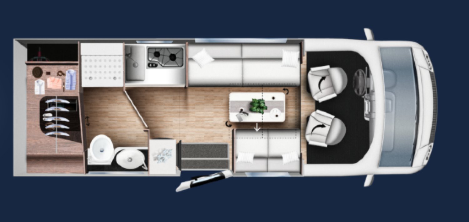 Grand salon convivial, cuisine pratique, salle d’eau bien agencée, nombreux rangements : un compagnon de route fiable et confortable pour vivre pleinement chaque escapade.