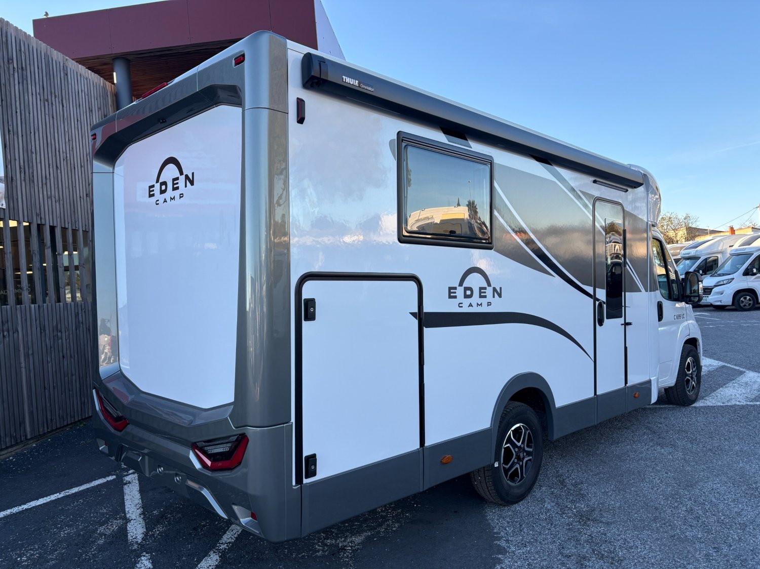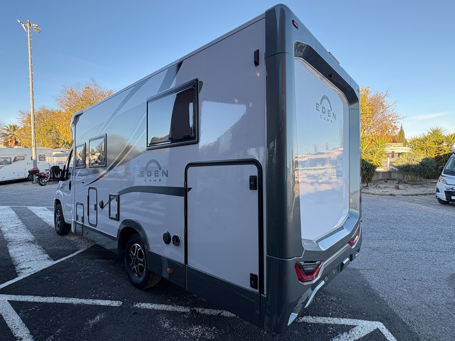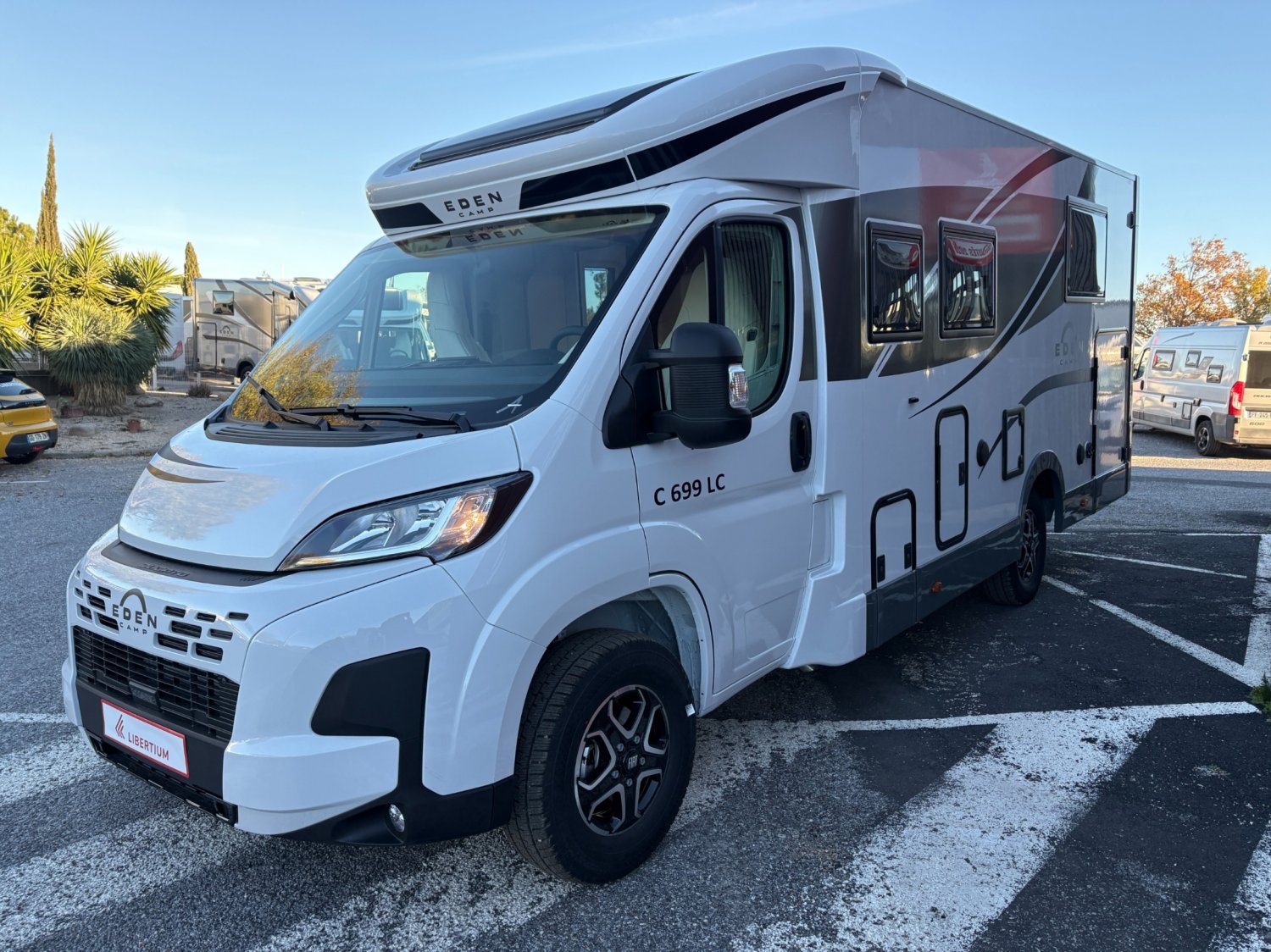 L’EDEN CAMP C 699 LC, construit sur le robuste Fiat Ducato 2.2 L de 140 ch, est un camping-car 4 places conçu pour offrir confort, autonomie et plaisir de conduite. Avec son agencement lumineux, son salon spacieux face-face, son lit central réglable, sa cuisine entièrement équipée et sa salle d’eau fonctionnelle, il combine élégance et praticité pour des voyages en duo, en famille ou entre amis. Sa motorisation moderne assure souplesse et performance sur route, tandis que ses équipements de bord – rangements optimisés, isolation soignée, solutions multimédias et aides à la conduite – garantissent sérénité et bien-être sur chaque trajet. Un véritable compagnon de route pensé pour l’évasion sans compromis.