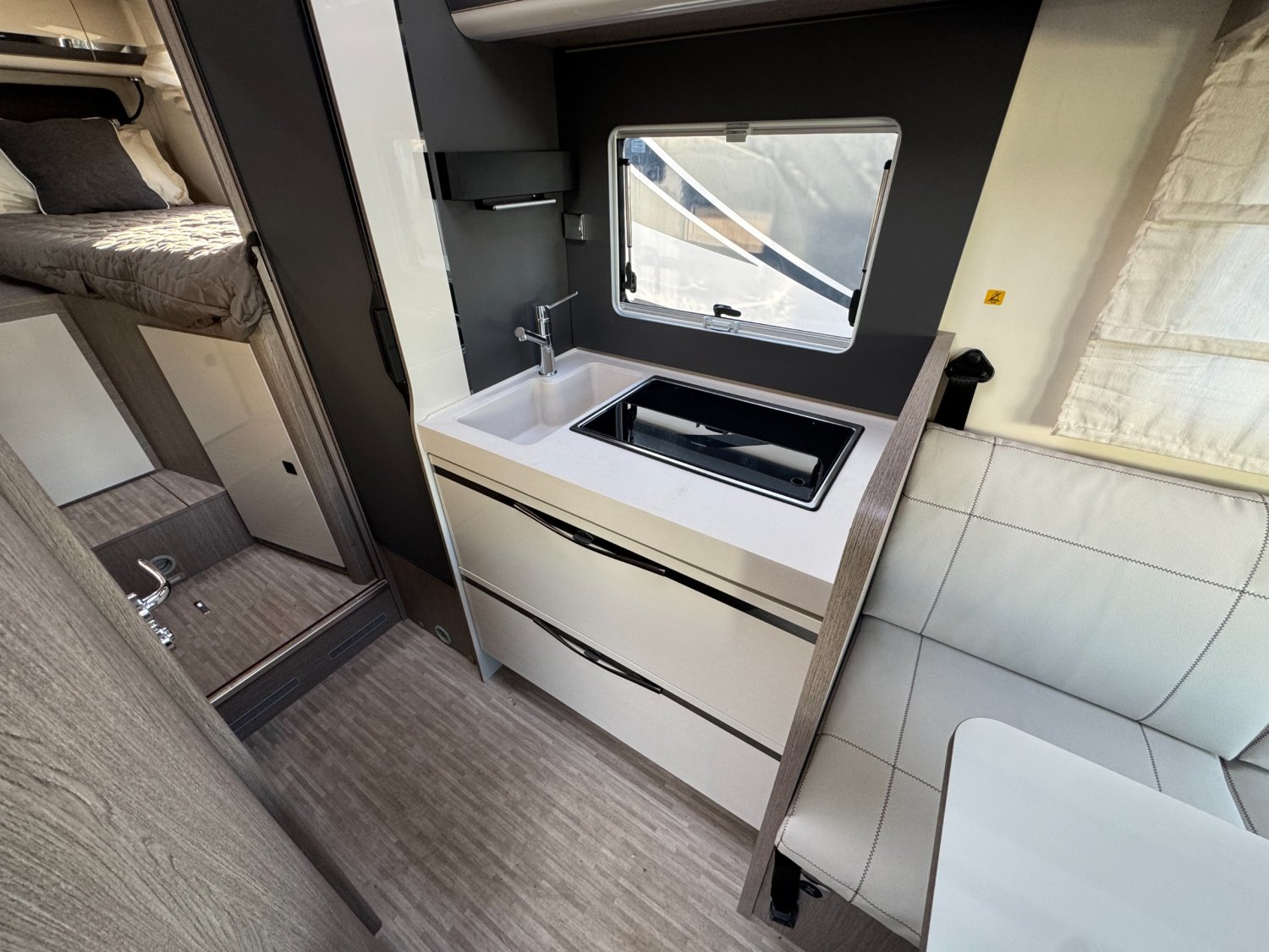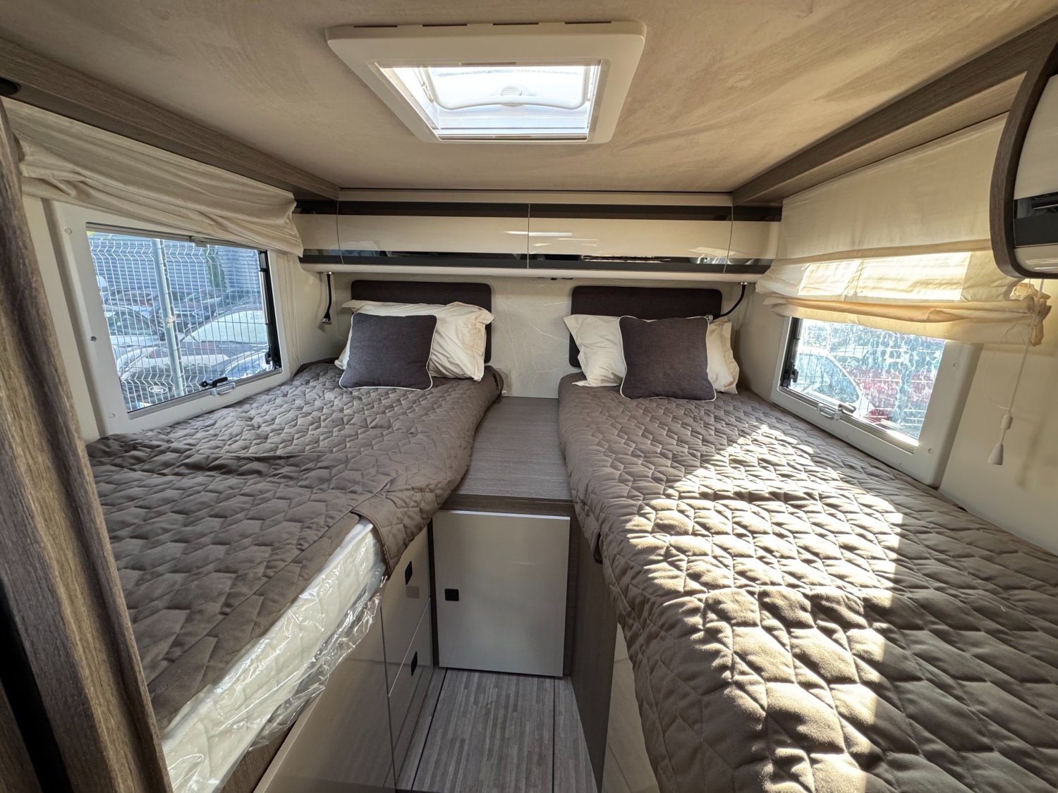 Ce profilé compact, avec lits jumeaux, salon face à, face, salle de bains à volume variable, garage pour vélos est L'ideal pour partir un voyage, a venir découvrir chez Libertium Toulon.