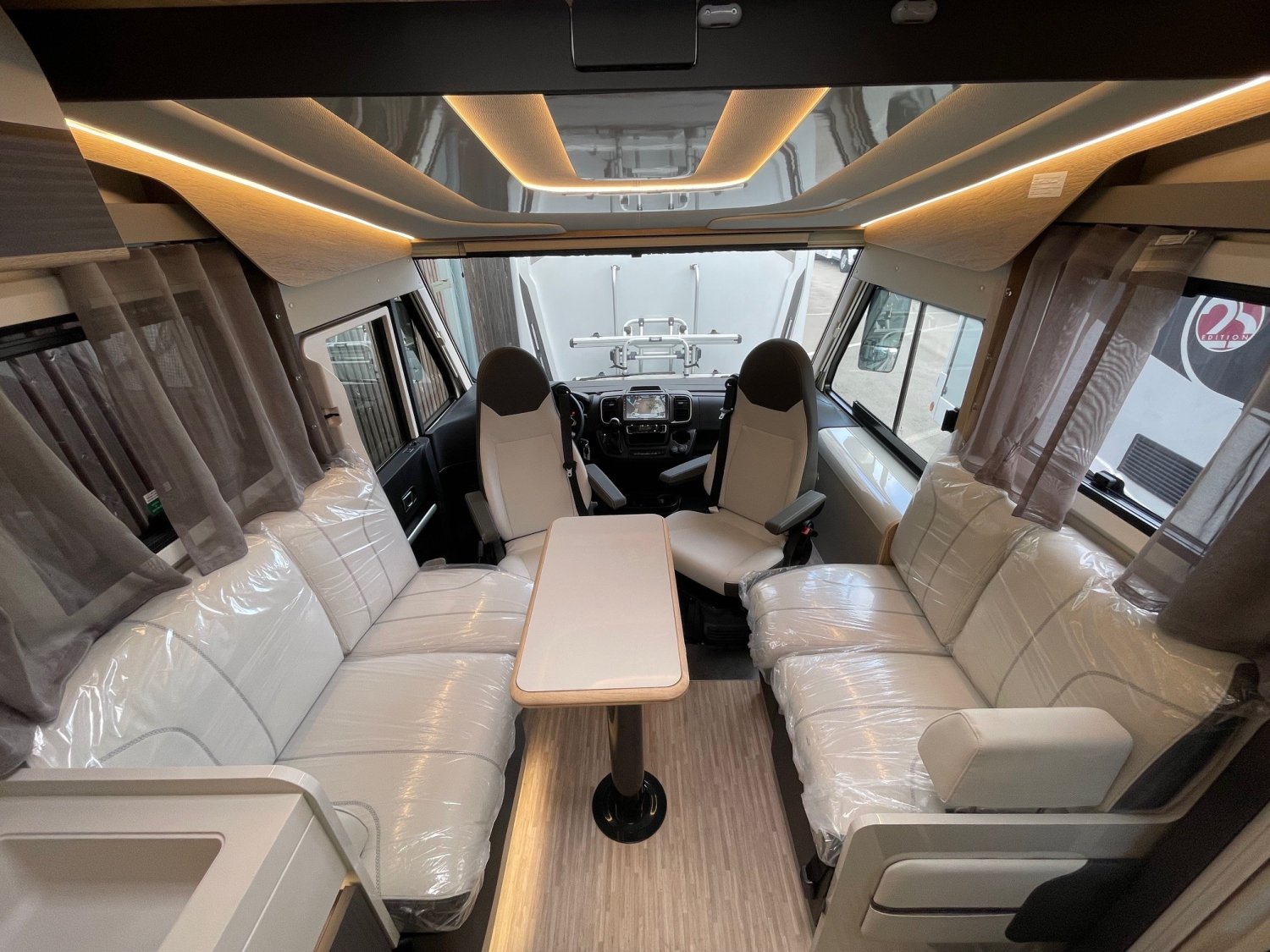 PORTE "XL" PRENIUM AVEC FENETRE ET DEUX POINTS DE SECURITE, TRACTION +, COMMANDES RADIO AU VOLANT, SURFACE INTERNE DU TOIT EN TISSU SOFT TOUCH, FEUX ANTIBROUILLARD, TABLEAU DE BORD NUMERIQUE, CAMERA DE RECUL DOUBLE OPTIQUE, RADIO DAB/BLUETOOTH "PIONEER", CHAUFFAGE COMBI 6KW DIESEL+ELECTRIQUE, TPMS ( CONTROLE DE PRESSION DES PNEUS AUTOMATIQUE ), JANTES EN ALLIAGE 16", PANNEAU SOLAIRE 200W + MPPT REGULATEUR, CONVERTISSEUR 200W, BATTERIES LITHIUM (2*100AH), I-NET X TRUMA + APP POUR LES FONCTIONS PRINCIPALES, STORE OCCULTANT PLISSE CABINE