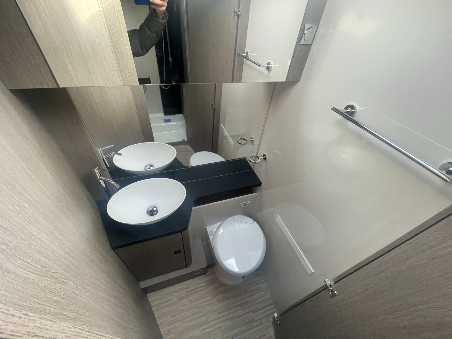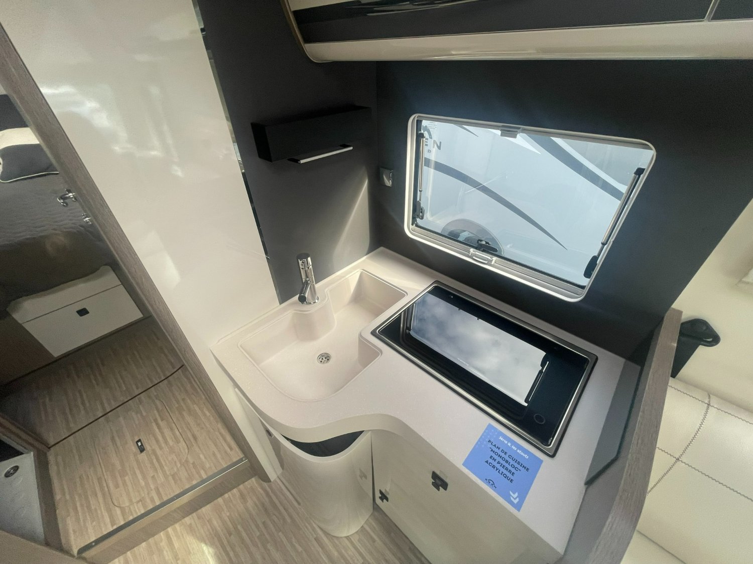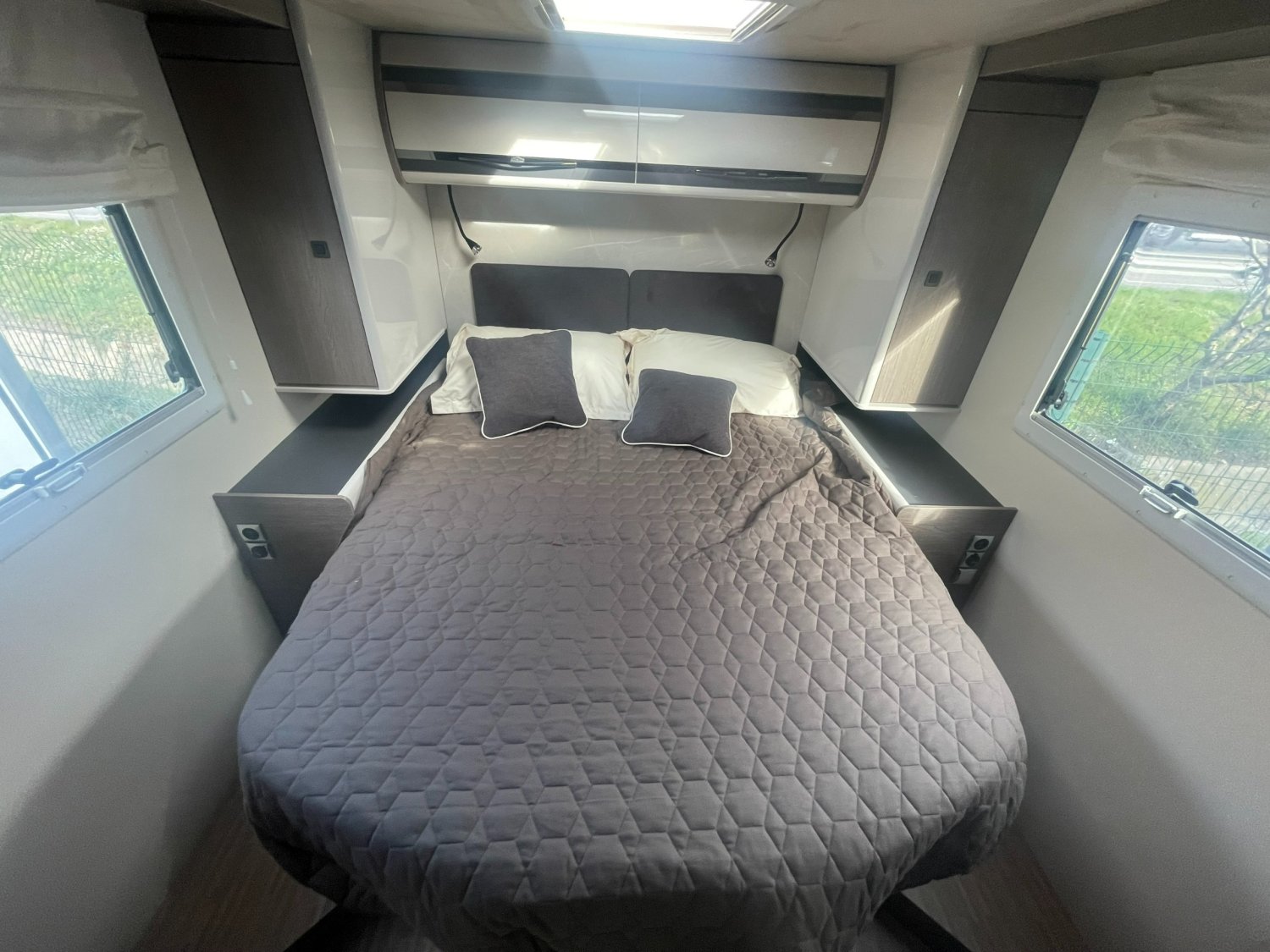 Intégral lits jumeaux, 7,47 mètres, avec grand salon face à face. Les sièges de la cabine pivotent pour s’intégrer au salon constitué de deux banquettes latérales en visà-vis.