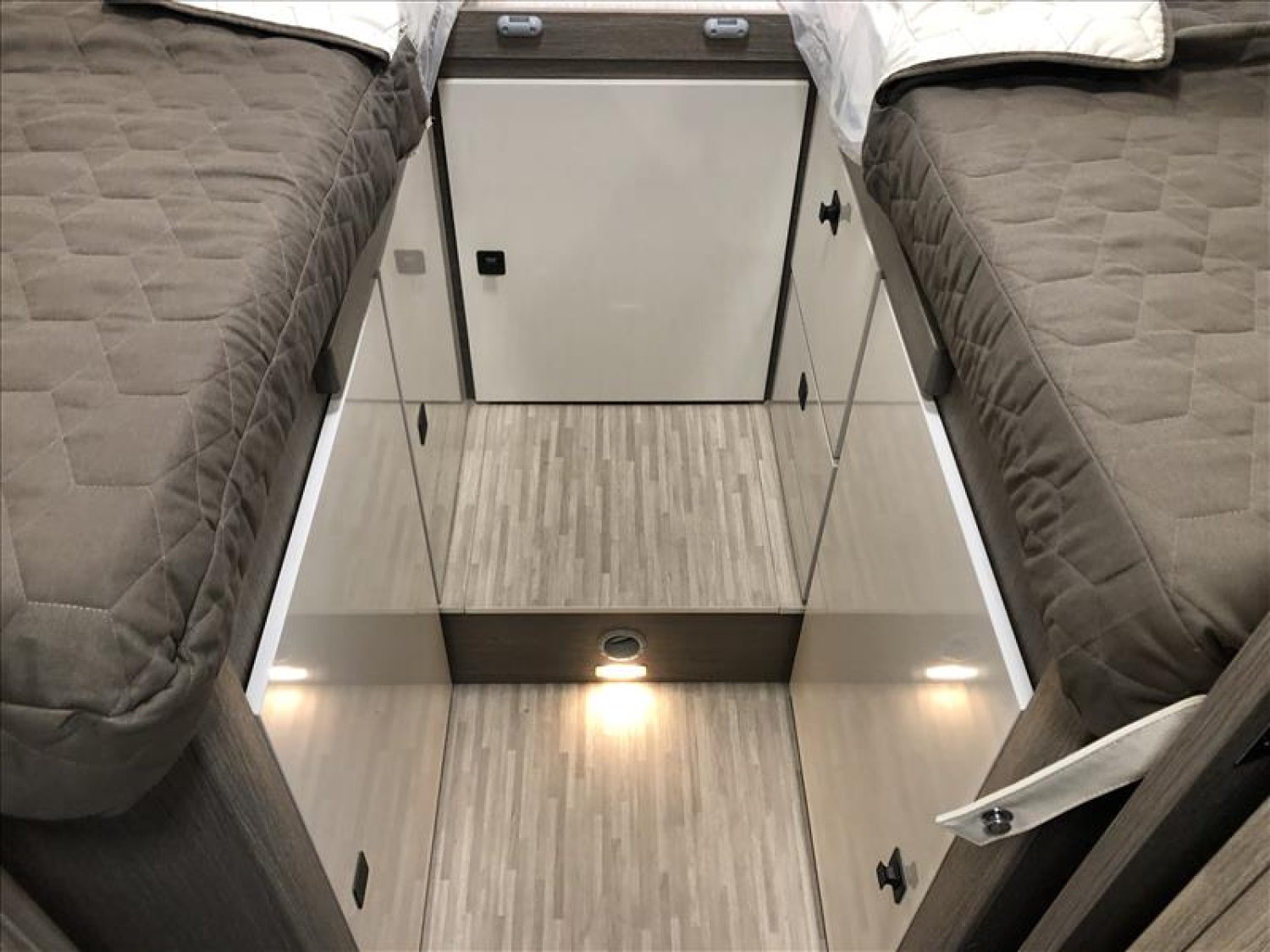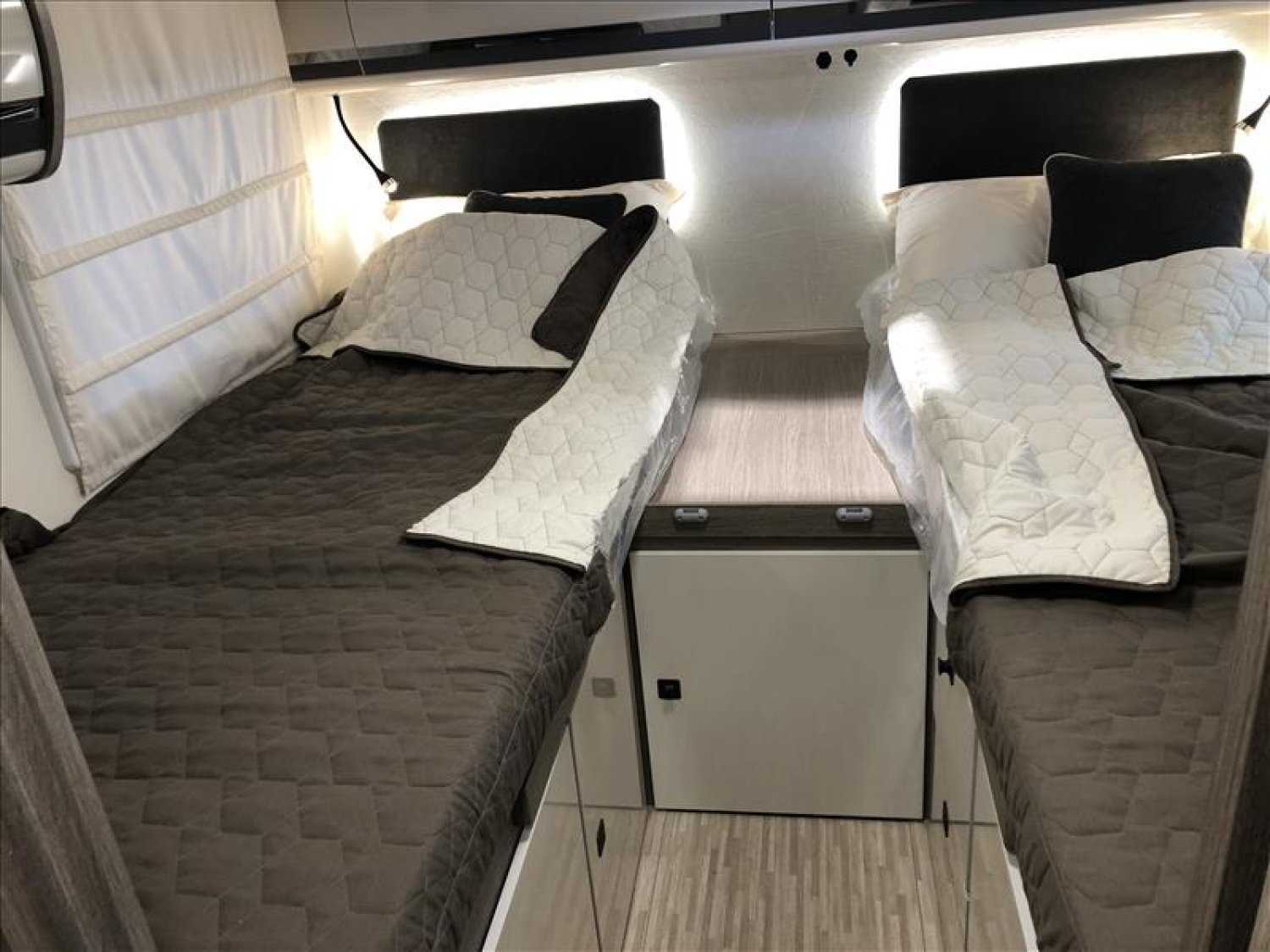 Bouches d'aération chauffé, Lanterneau panoramique ouvrant avec store et moustiquaire, Lit de pavillon électrique, Petit espace de rangement pour les outils