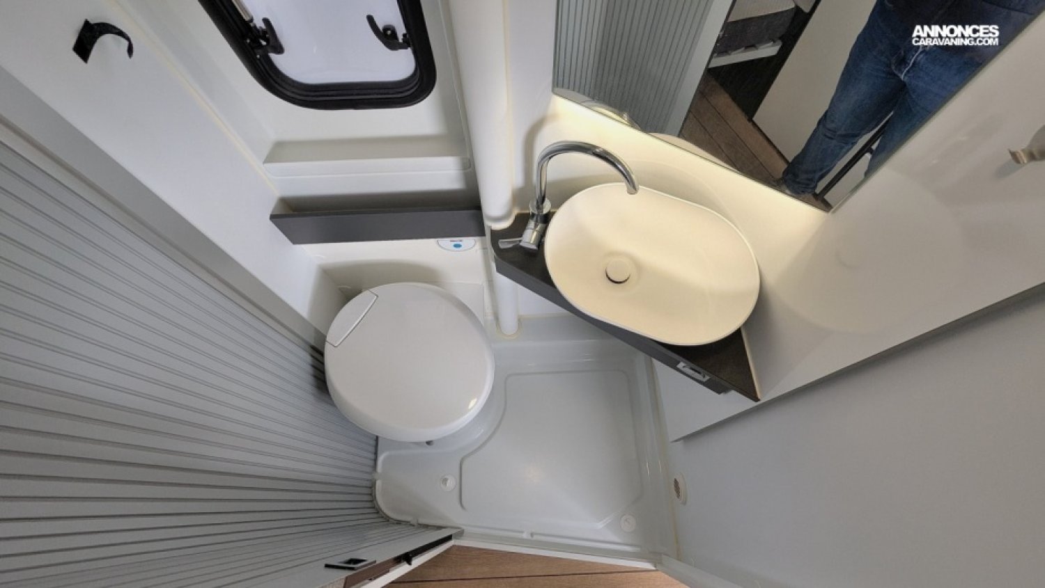 Fourgon aménagé sur Citroen Jumper 2,2 140 cv avec lits superposés, salle d'eau vario avec douche séparée par une paroi pivotante, cuisine fonctionnelle avec frigo à compression et nombreux rangements et salon avant avec sièges pivotants.