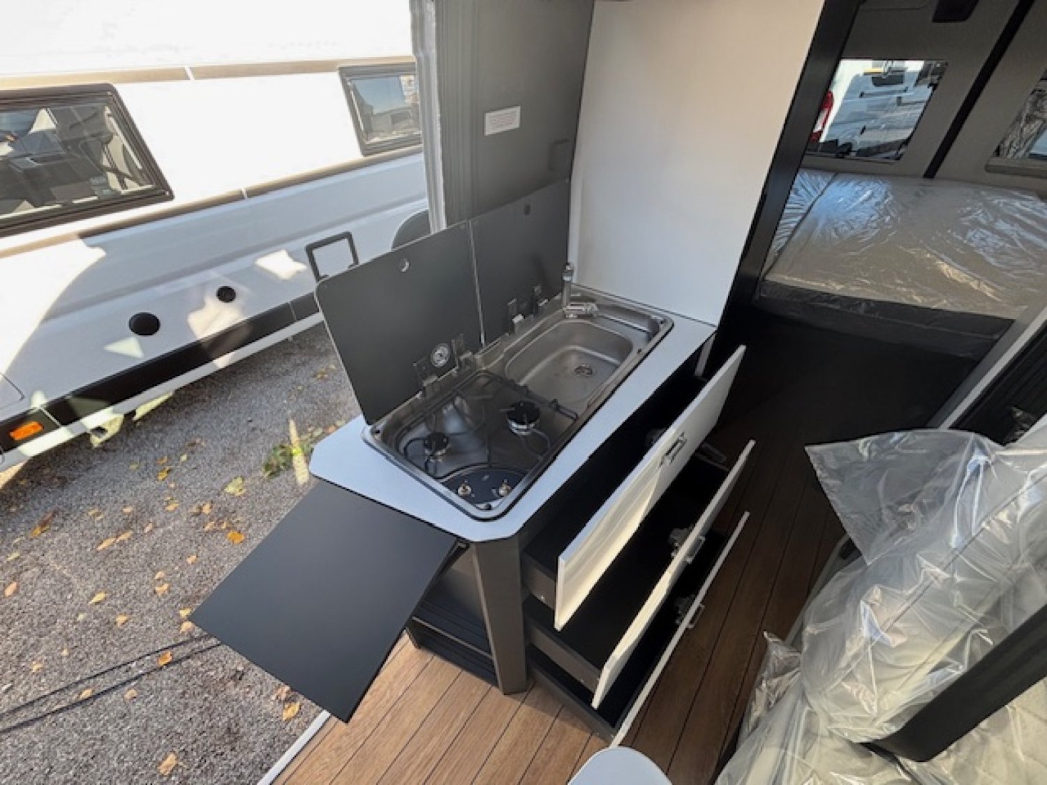 Moins de 6 m de longueur, il offre une maniabilité exceptionnelle tout en maximisant le confort : Salle de bain vario astucieuse, grand couchage transversal, et un équipement complet (store extérieur, panneau solaire, station multimédia avec caméra de recul, Smart TV + antenne 4g).