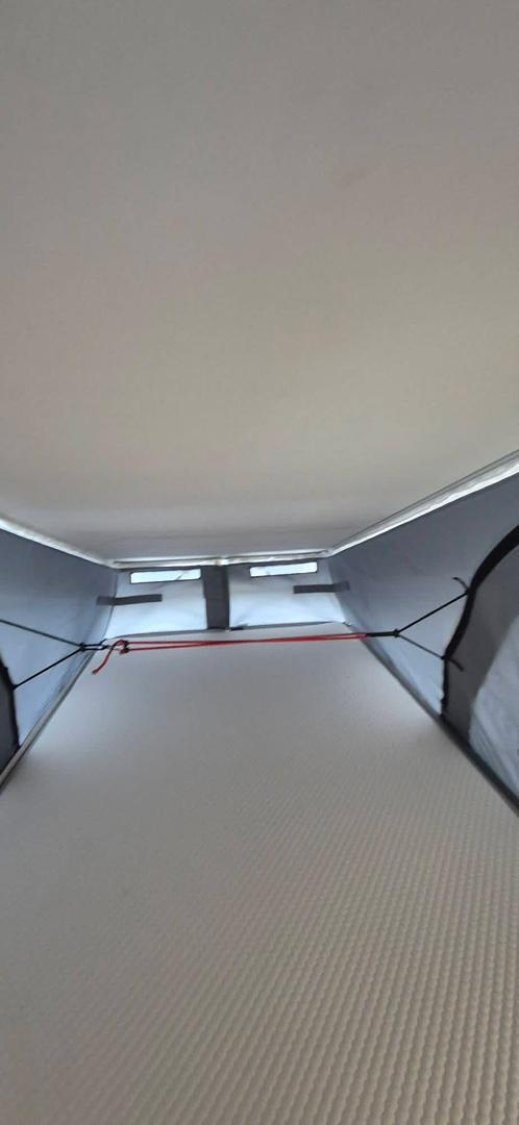 Un toit relevable offre un second couchage double pour deux adultes.
