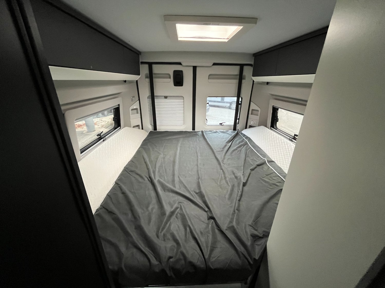 Fourgon aménagé moderne et haut de gamme (6.36 m). 4 places carte grise / 4 couchages. Motorisation 2.2 L – 140 ch sur porteur Fiat. Cuisine équipée, salle d’eau complète, chauffage Truma, grand frigo 138 L, nombreux rangements. Toit relevable Sky Lift innovant, design intérieur contemporain, excellente isolation et confort premium pour voyager en toute saison !