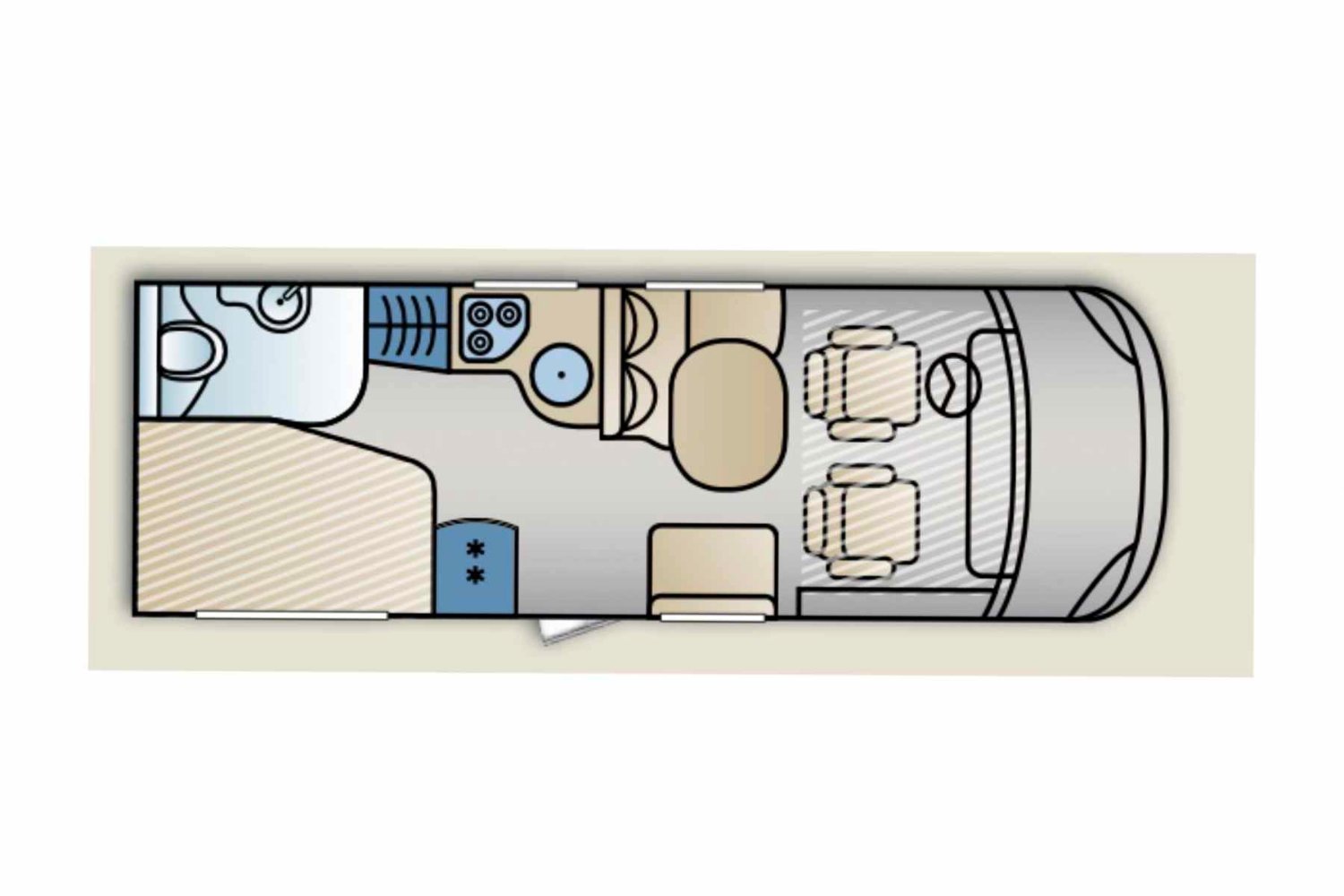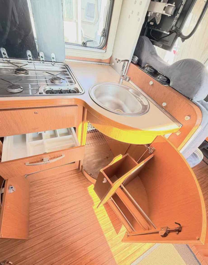 Avec une longueur compacte de7,06 m, il offre malgré tout un coin salon particulièrement grand, pouvant accueillir 5 à 6 personnes.