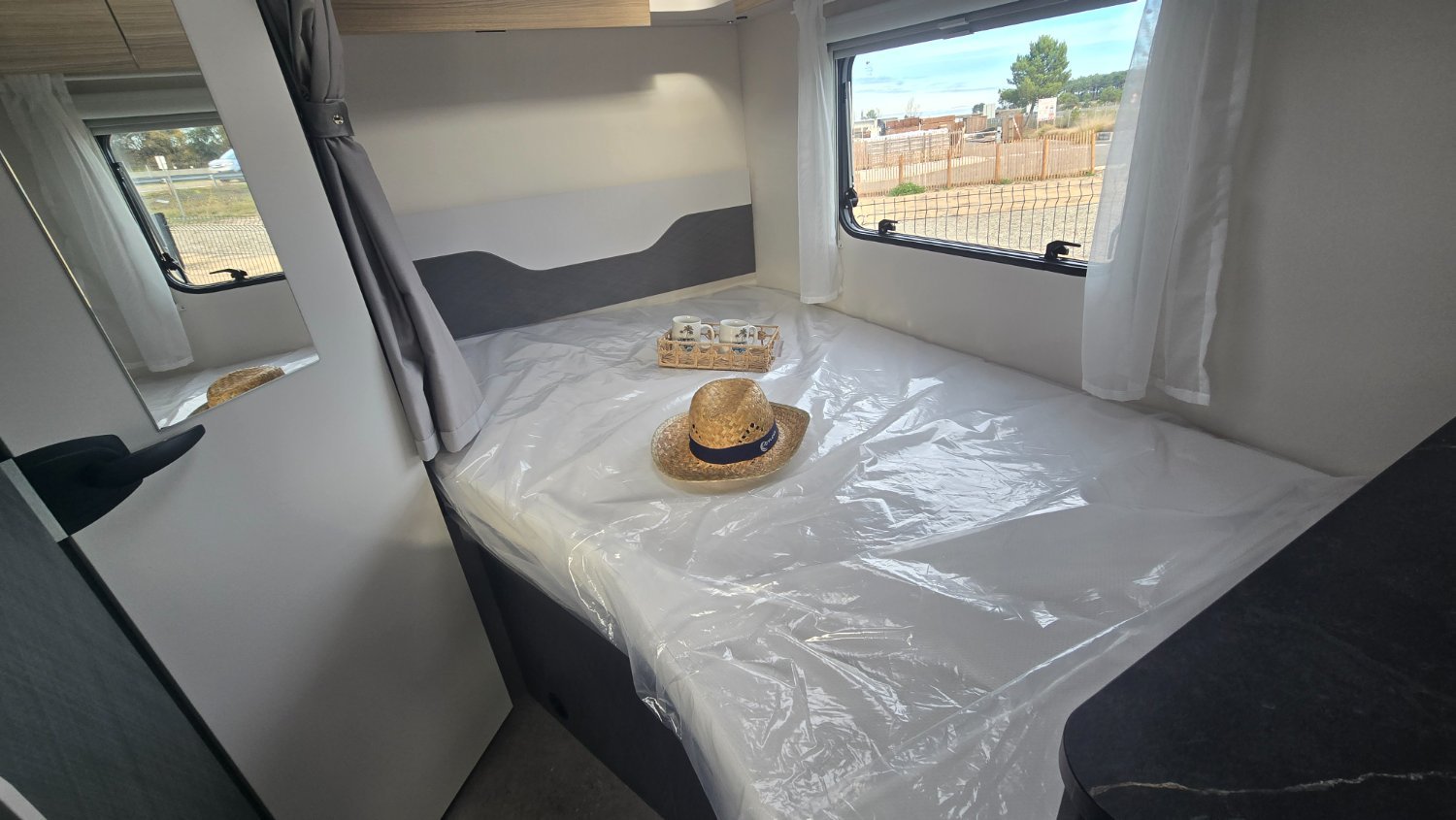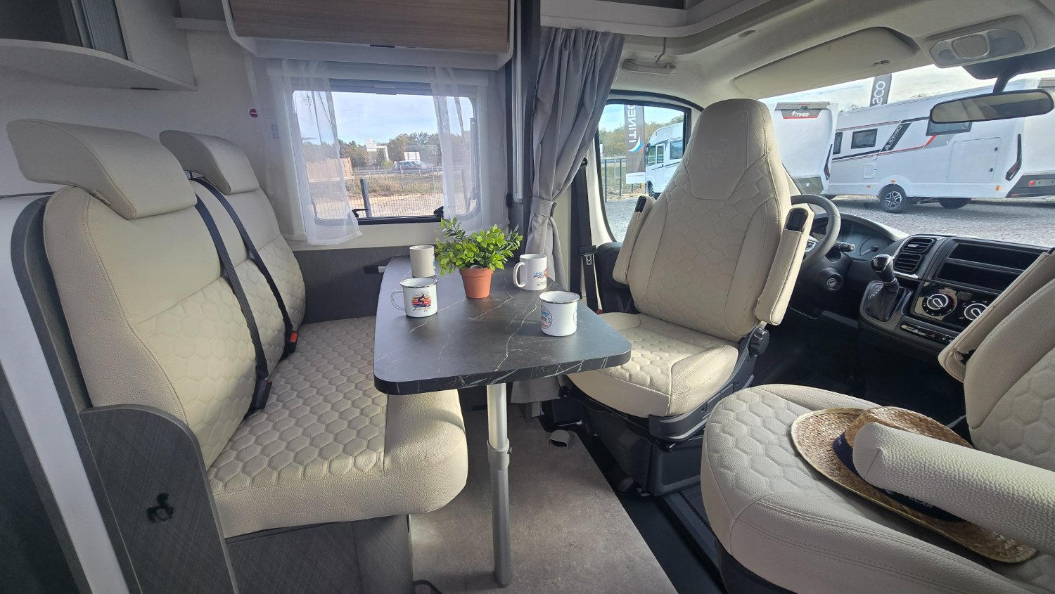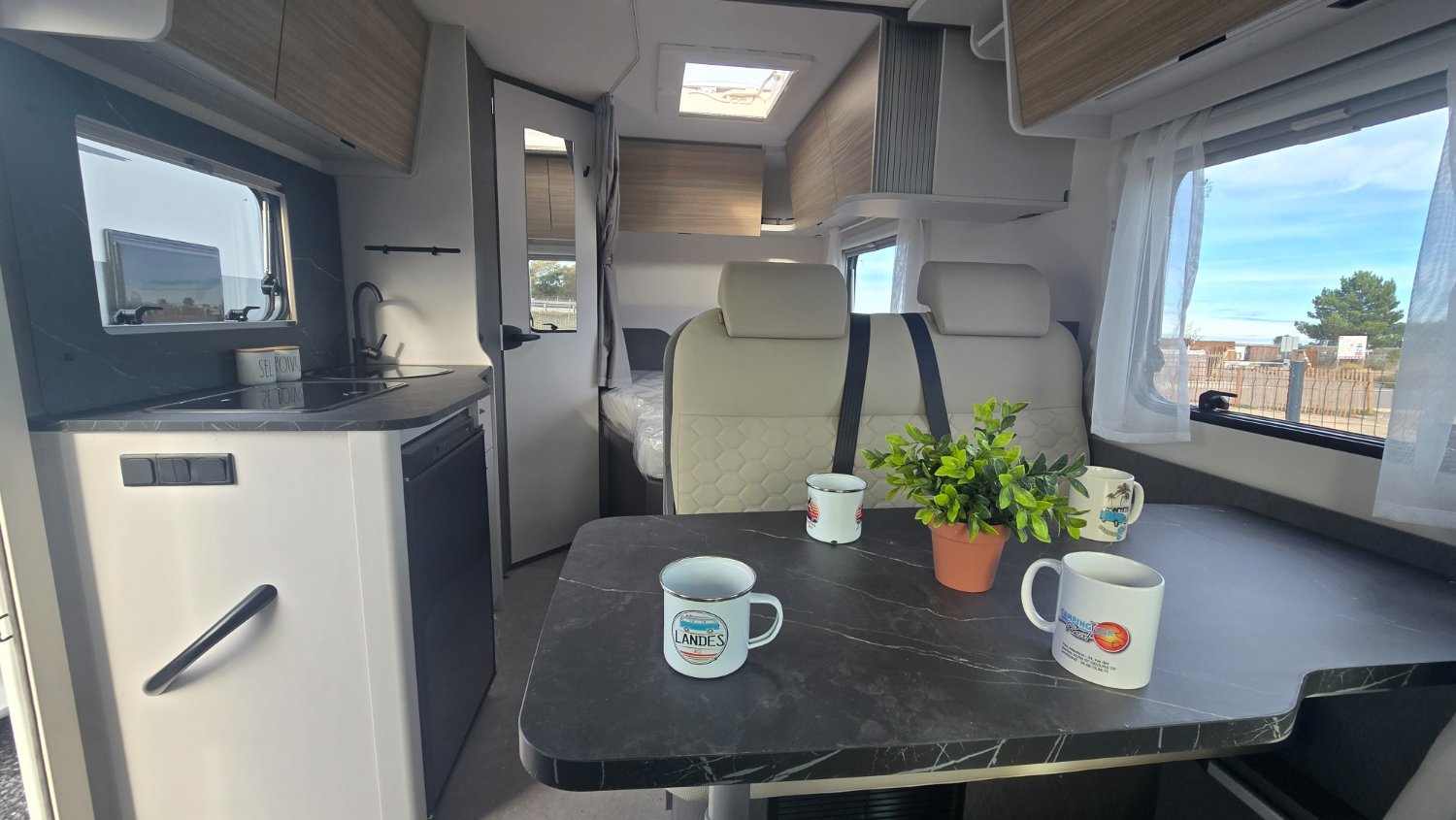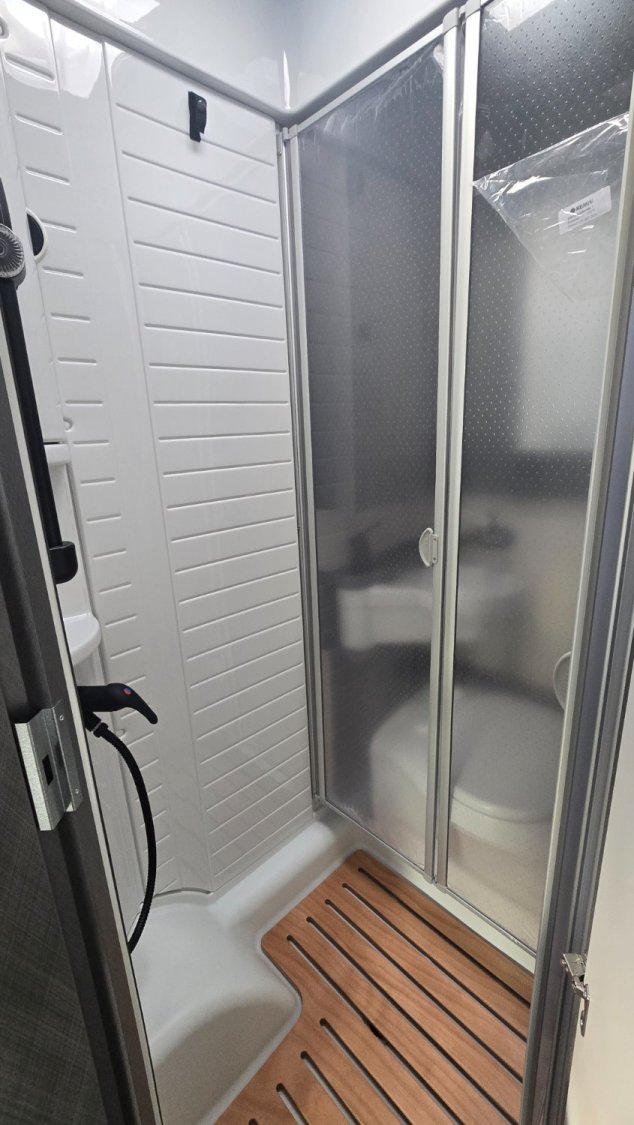 Ce profilé de 5.95 mètres signé ETRUSCO (groupe HYMER) , vous disposez un lit française, lit pavillon et une salle de bain avec douche séparée.