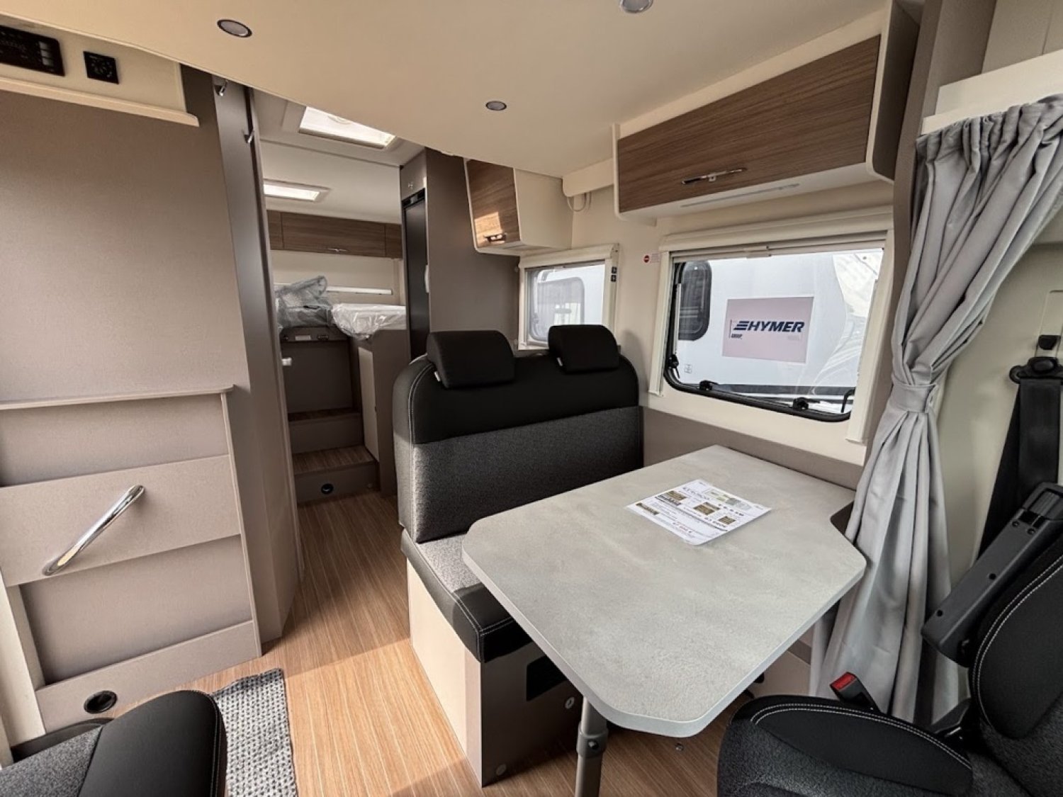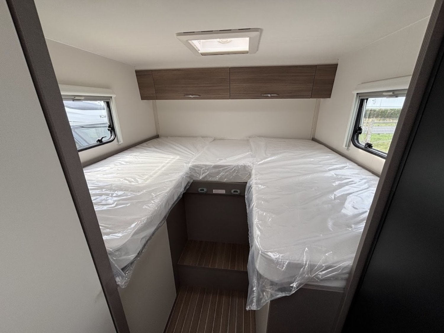 Coffre extérieur vertical, Cuisine en long, Douche à vario, Lit dînette avant, lit jumeaux, lit pavillon, Salon avant sièges pivotants, WC Cassette.