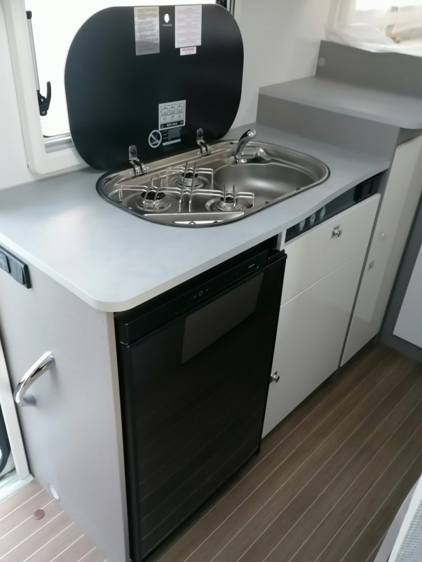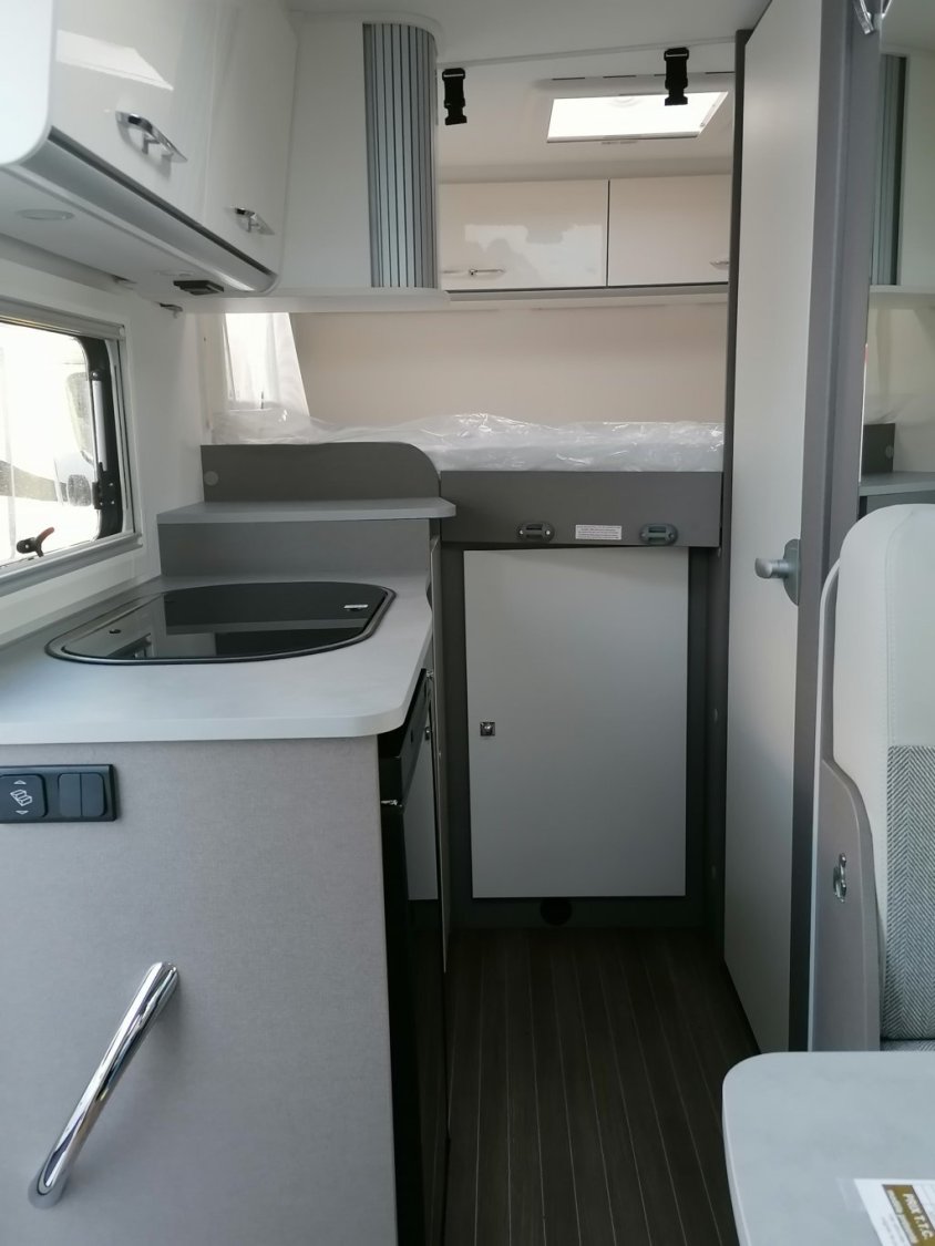 - PACK complète sélection cellule : Revêtement des sièges de cabine, Réservoir d’eaux usées, isolé ,Prise supplémentaire dans placard de pav, Store extérieur (manuel) 3,5 m, laqué bl, Baies avec cadre, Porte garage, côté conducteur, Pieds en bois pour le bac à douche, Miroir avec patères, Multimedia Paket Compact : de série