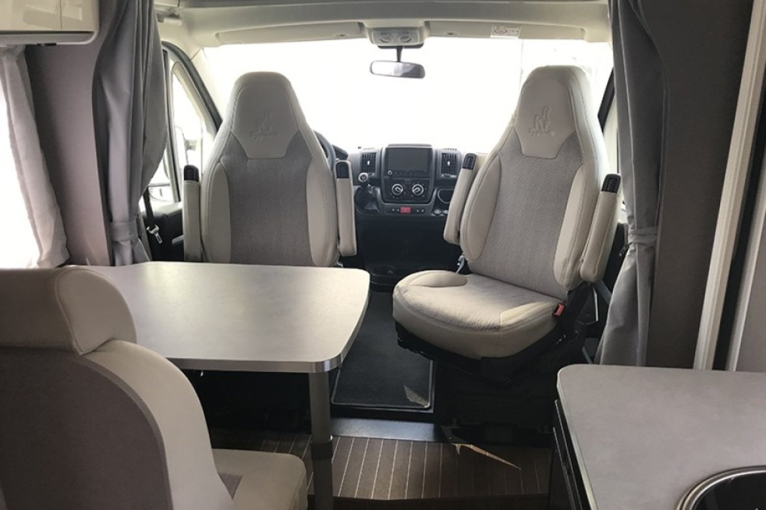 Chauffage / chauffe-eau Truma - - sièges confort pivotants réglables en hauteur - poignées de meuble finition chrome – salon 4 places - Grande soute transversal – salle d’eau modulable – réfrigérateur Thetford 89L