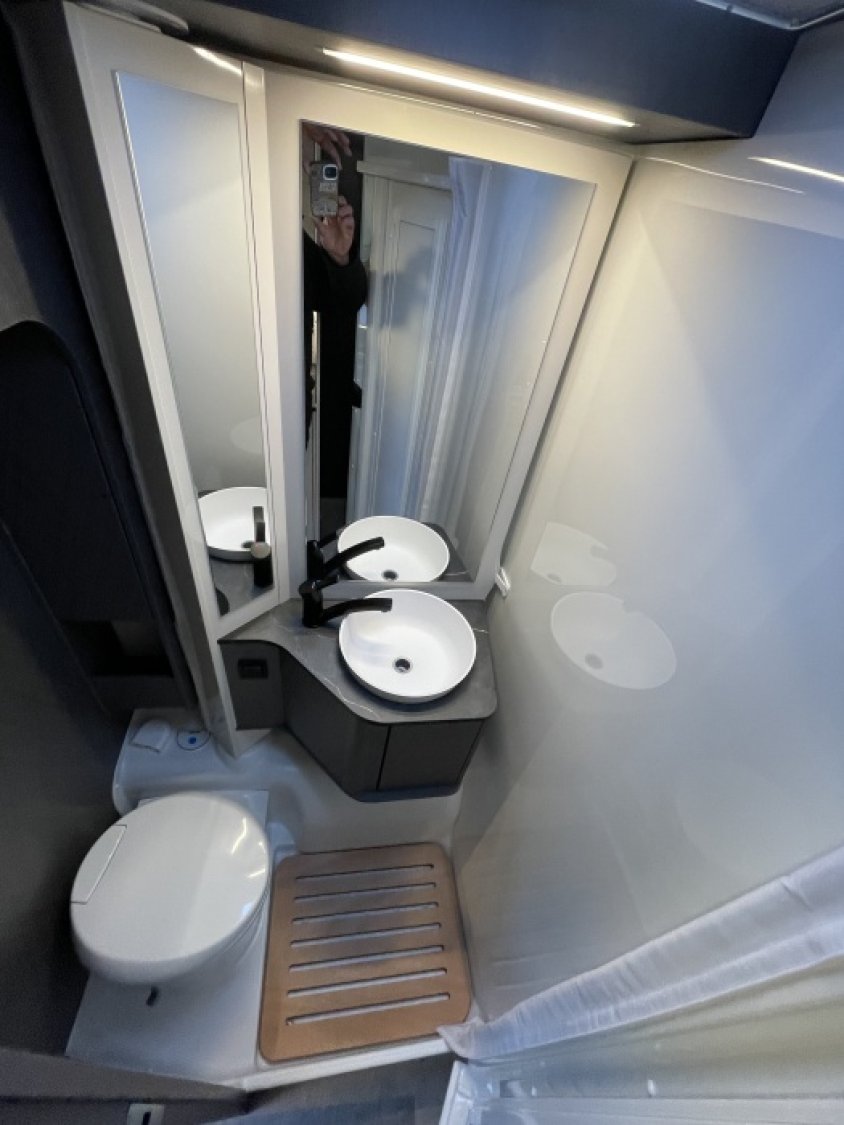 À l’arrière, il dispose de deux lits jumeaux modulables en un grand lit transversal offrant un couchage confortable de 195 x 191 cm. À l’avant, un lit simple.