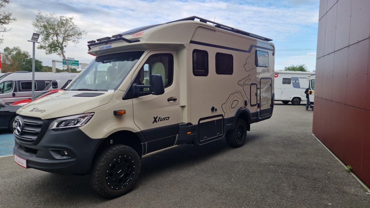 Le Eura Mobil Xtura 686 EF est un profilé compact tout-terrain 4×4 sur base Mercedes Sprinter, équipé d’un moteur 190?ch et d’une transmission intégrale. Il dispose de 3 places carte grise et de 2 à 3 couchages (lits jumeaux à l’arrière). Le salon face-à-face, la cuisine centrale et la salle d’eau avec paroi pivotante offrent une optimisation de l’espace. Livré avec grande autonomie?: batterie lithium de haute capacité, panneaux solaires, chauffage sol, structure renforcée, et équipement de série complet.