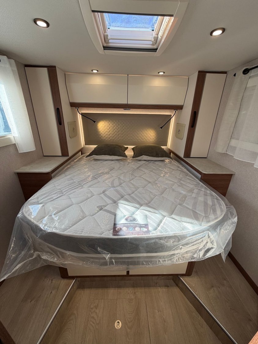 Proposé en Édition Wellness (collection 2026), il transforme chaque voyage en une véritable parenthèse de bien-être. Sellerie délicate Beige Moka, coussins bi-matière réversibles, mobilier noyer raffiné, literie haut de gamme et ambiance lumineuse apaisante font de ce modèle un véritable cocoon nomade.