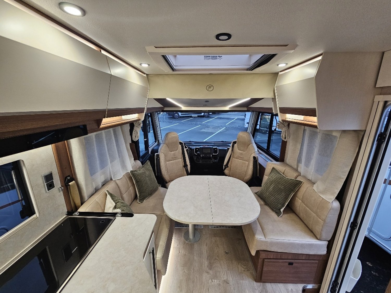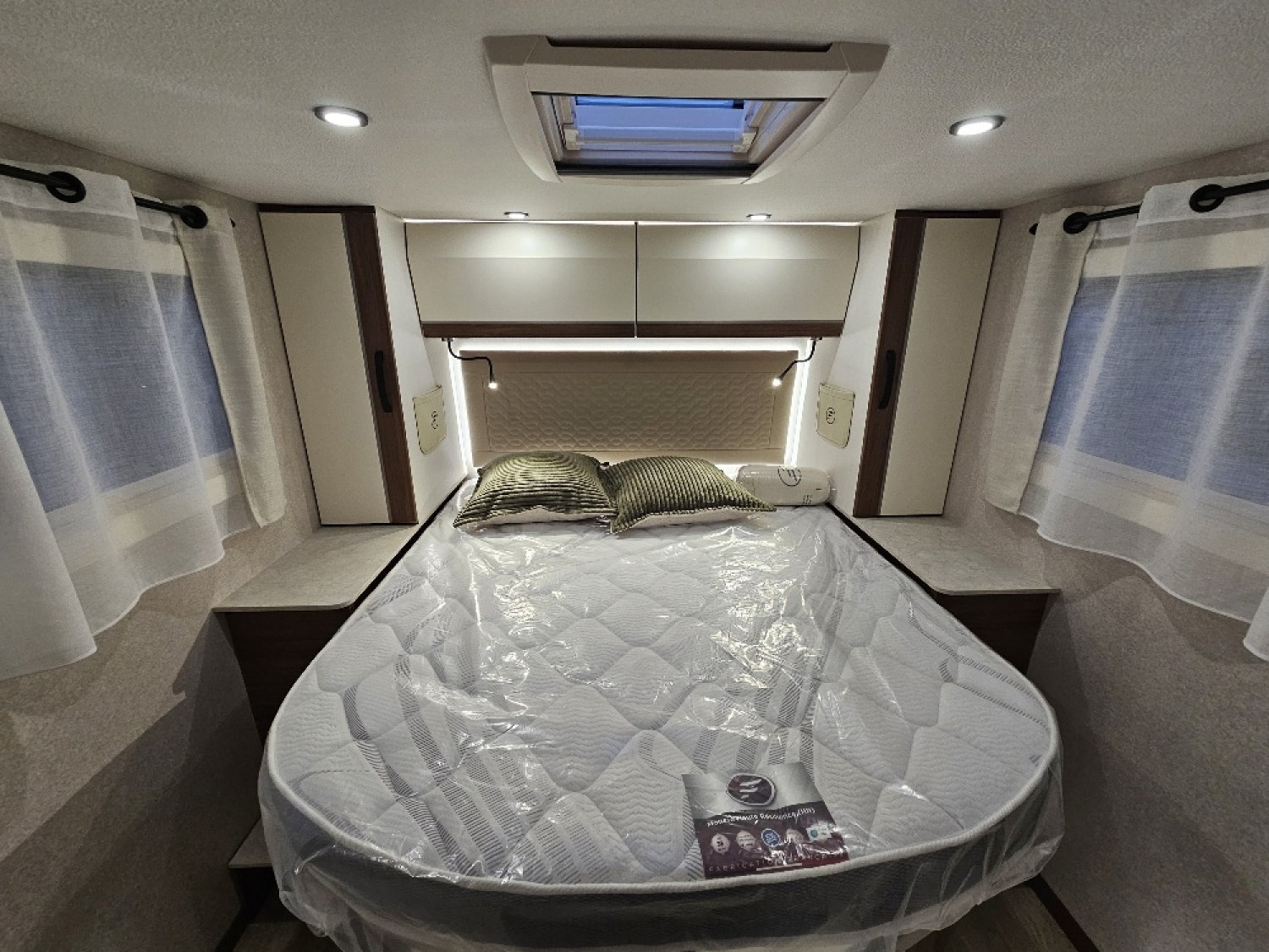 SERIE WELLNESS, Chassis ALKO, Double plancher, Literie haut de gamme, Lit central réglable électriquement, Pack lounge : Clim auto / Chargeur induction / combiné tableau de bord 100% numérique, Truma 6000 DE, Batterie Lithium 150 Ah + DC/DC60Ah, Plancha forge Adour